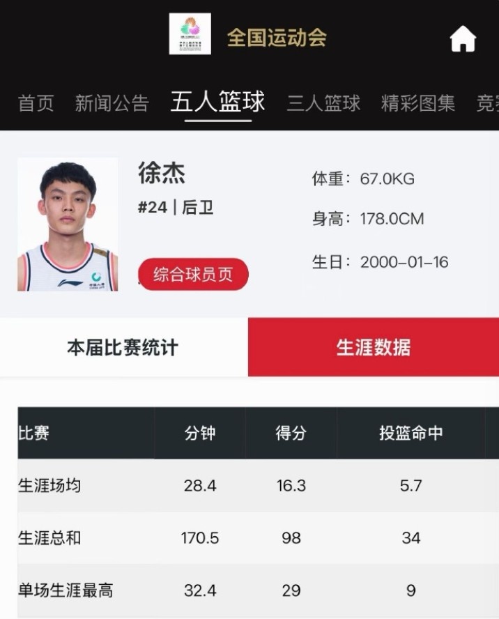 此役,广东全运男篮后卫徐杰攻防两端高效全面,打了32分钟11投6中,三分10中6拿到全场最高18分9助攻外加7篮板。