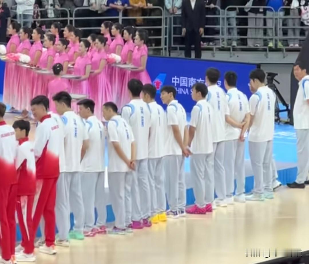 全运会男篮颁奖可以看出,浙江队是真没准备好上领奖台啊! 四川和广东都统一着装,就浙江队穿的鞋子五颜六色,而且衣服也像是没准备好,其他两队都有外套,就浙江队穿个短袖,虽然广东目前没多冷,但肯定不是穿短袖的季节了!也难怪颁奖典礼要等那么久! 那么问题来了,有哪个队是准备好了颁奖服装却没能站上去的呢? 广东全运会男篮 全运会四川男篮 篮球全运会