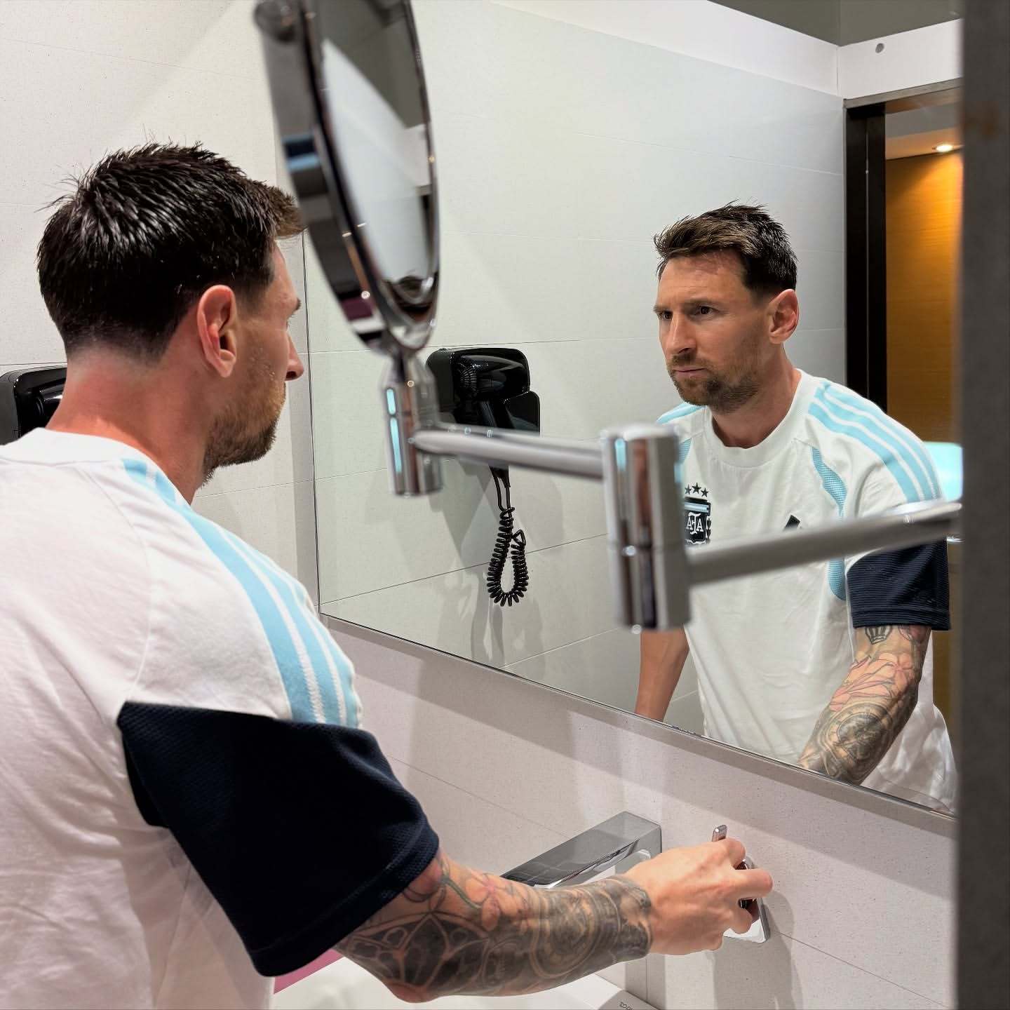 阿根廷国家队理发师丹尼(又是你)ins更新梅西的新发型💈小梅的表情说明了一切