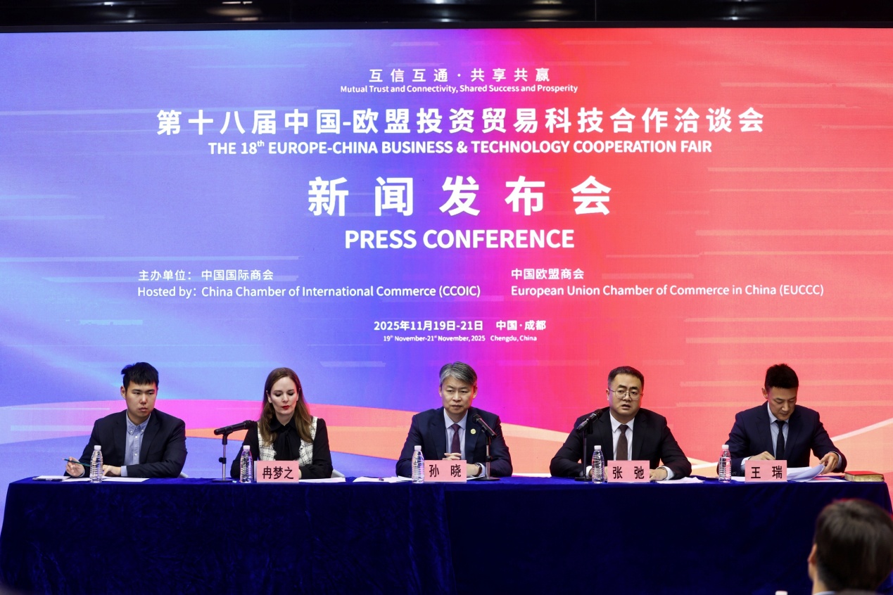中国经济网11月13日讯(记者王婉莹)11月12日,第十八届中国-欧盟投资贸易科技合作洽谈会(简称“欧洽会”)新闻发布会在北京举行。本届欧洽会将于11月19日至21日在成都举办,以“互信互通·共享共赢”为主题,围绕中欧双边经贸关系、产业链供应链合作等话题展开交流研讨。