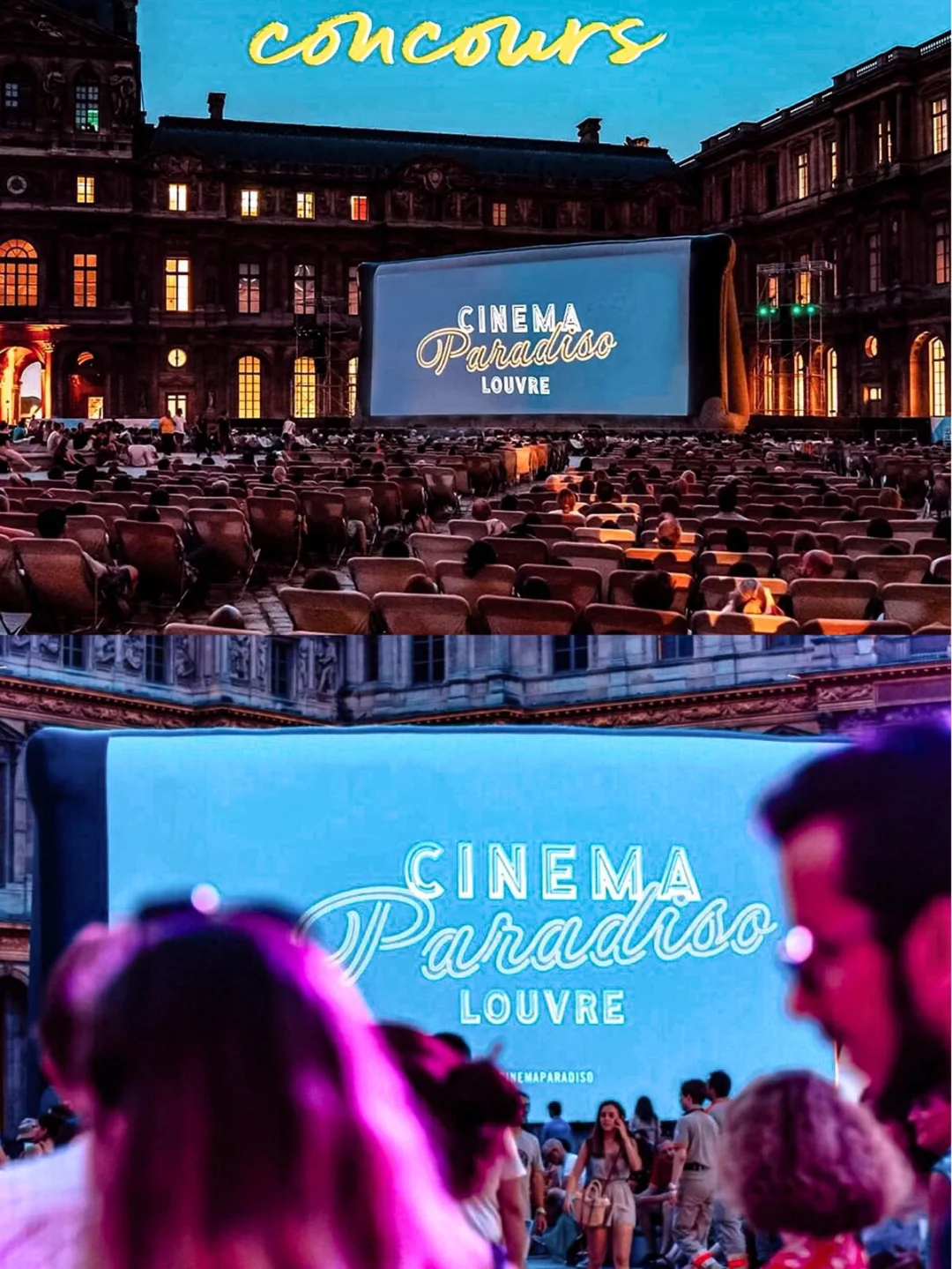 这次的场地选在了巴黎市中心的卢浮宫,一共持续4天,而且是免费活动,但是需要小伙伴们自己在Festival Paradiso官网登记报名,主办方随机抽取2000+幸运观众~现场不仅有电影,还有美食音乐会以及DJ表演!!!
