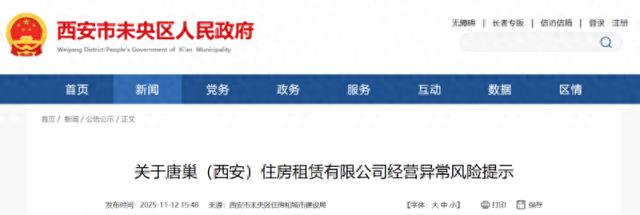 近日,我市陆续收到市民投诉,反映唐巢(西安)住房租赁有限公司(实际办公地址:陕西省西安市经济技术开发区凤城二路云天大厦309室)在收取市民租金后,未及时履行房屋租赁合同导致市民利益受损。