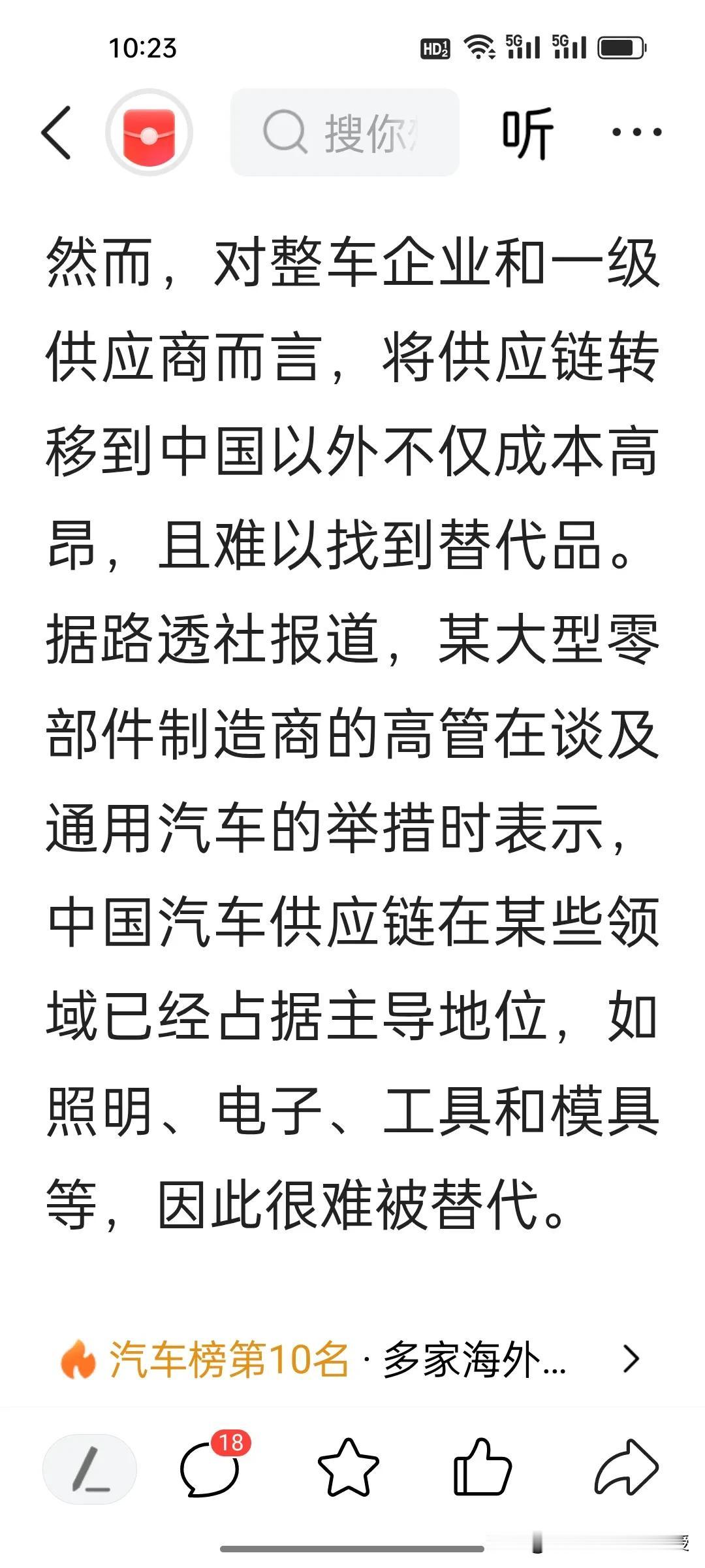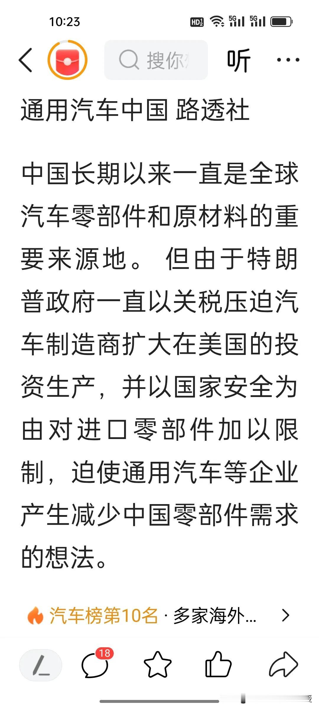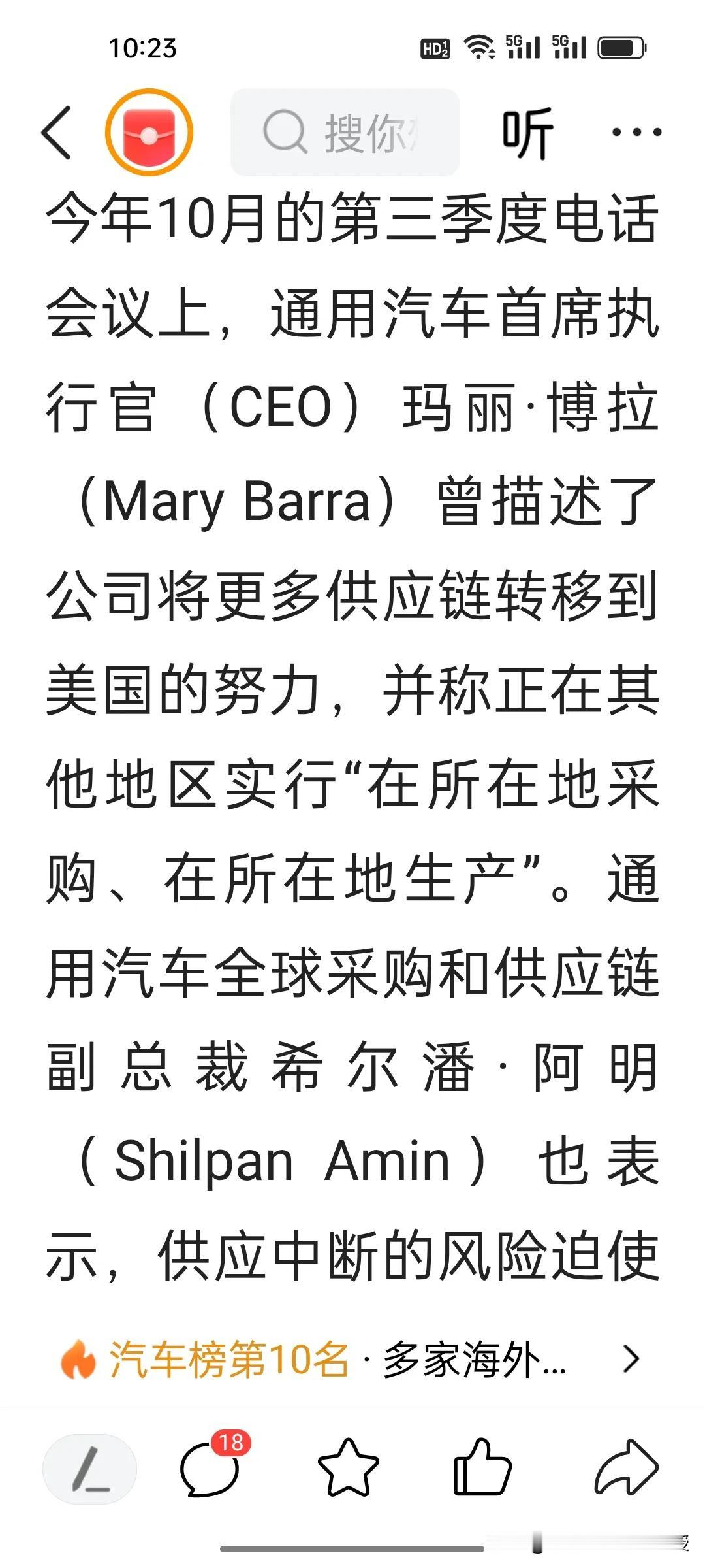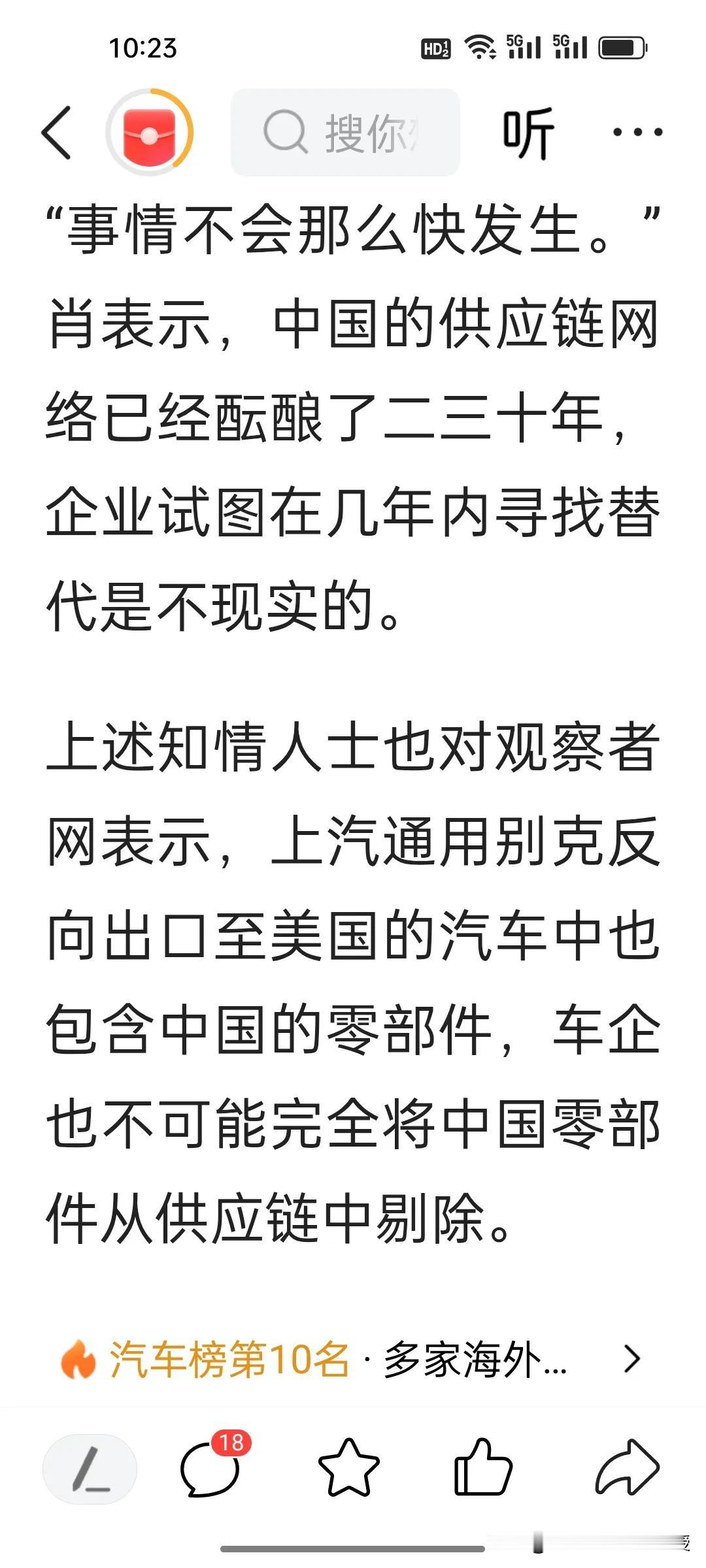 通用汽车这是未雨绸缪,自断臂膀?竟然想与中国供应链脱钩? 今年第三季度通用全球营收破1397亿,在华销量47万辆汽车,增长10.1%,2024年全球销量410万辆,排第六,中国市场撑起近三成份额,中国市场已经是通用不可或缺的全球主要市场。 根据《观察者网》报道,有关人士消息,通用汽车已经让数千家原料供应商要找中国以外的原材料替代品,要在2027年脱离中国供应链。 这简直是异想天开啊!车载电子、精密模具等核心部件,中国供应链的完整度、成本优势和技术成熟度,这是二三十年沉淀的硬实力,通用汽车还要上哪里去找性价比这么高的原材料替代呢?美国的汽车行业供应链重构,这是嘴上说说就能完成的吗? 没有中国供应链托底,通用在中国的销量和整体利润都得大幅下降,所谓“脱钩”不过是纸上谈兵,我不信通用汽车能真正做到完全脱钩。
