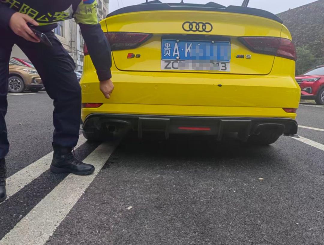近日,贵阳交警接群众举报,有一辆小型汽车排气管声音特别大,严重扰民。