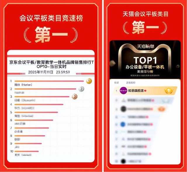 今年双11狂欢节,会议平板头部品牌皓丽再次交出亮眼成绩单。据京东与天猫官方数据显示,皓丽在双平台均实现全周期第一,这已是皓丽连续第八年在双11大促期间揽获冠军。