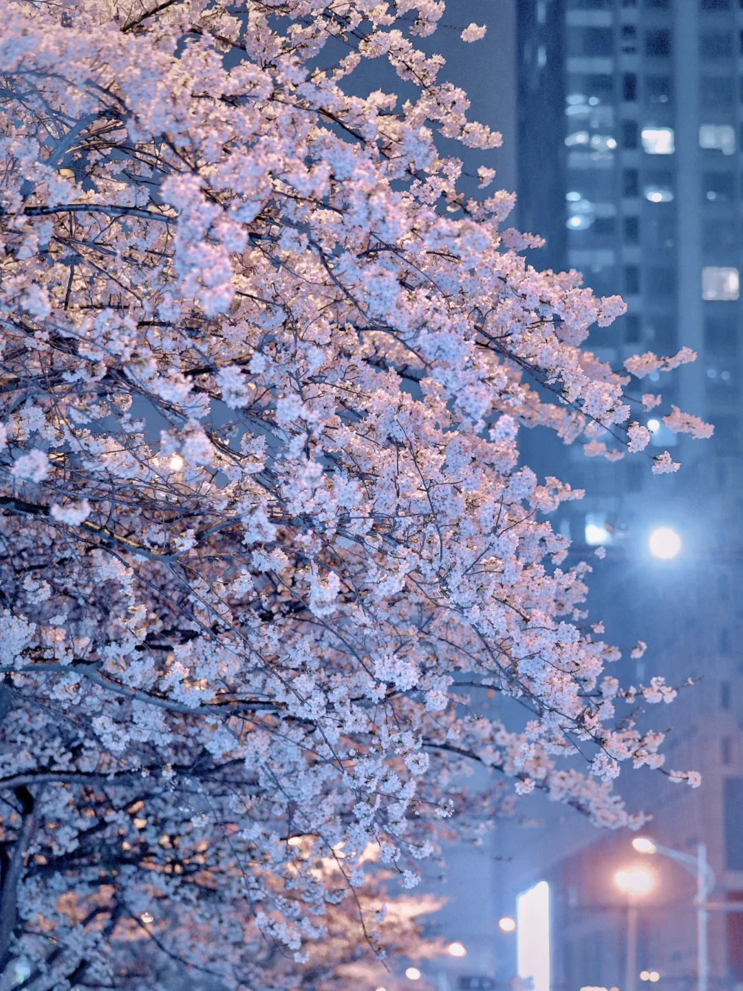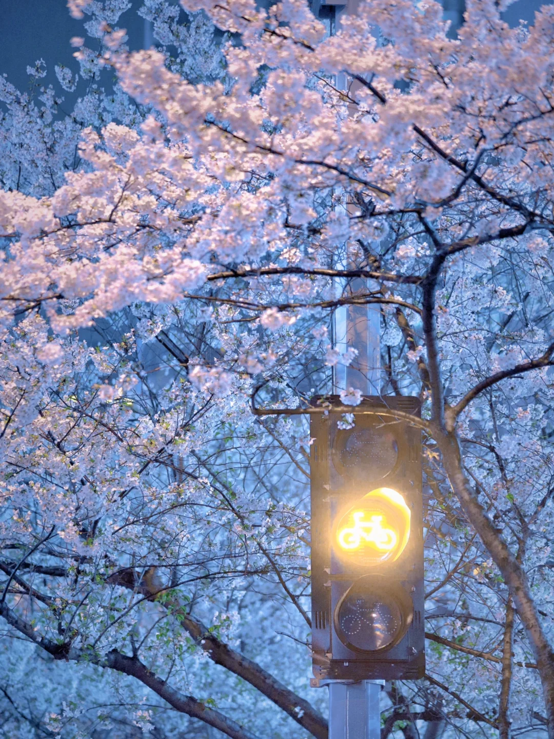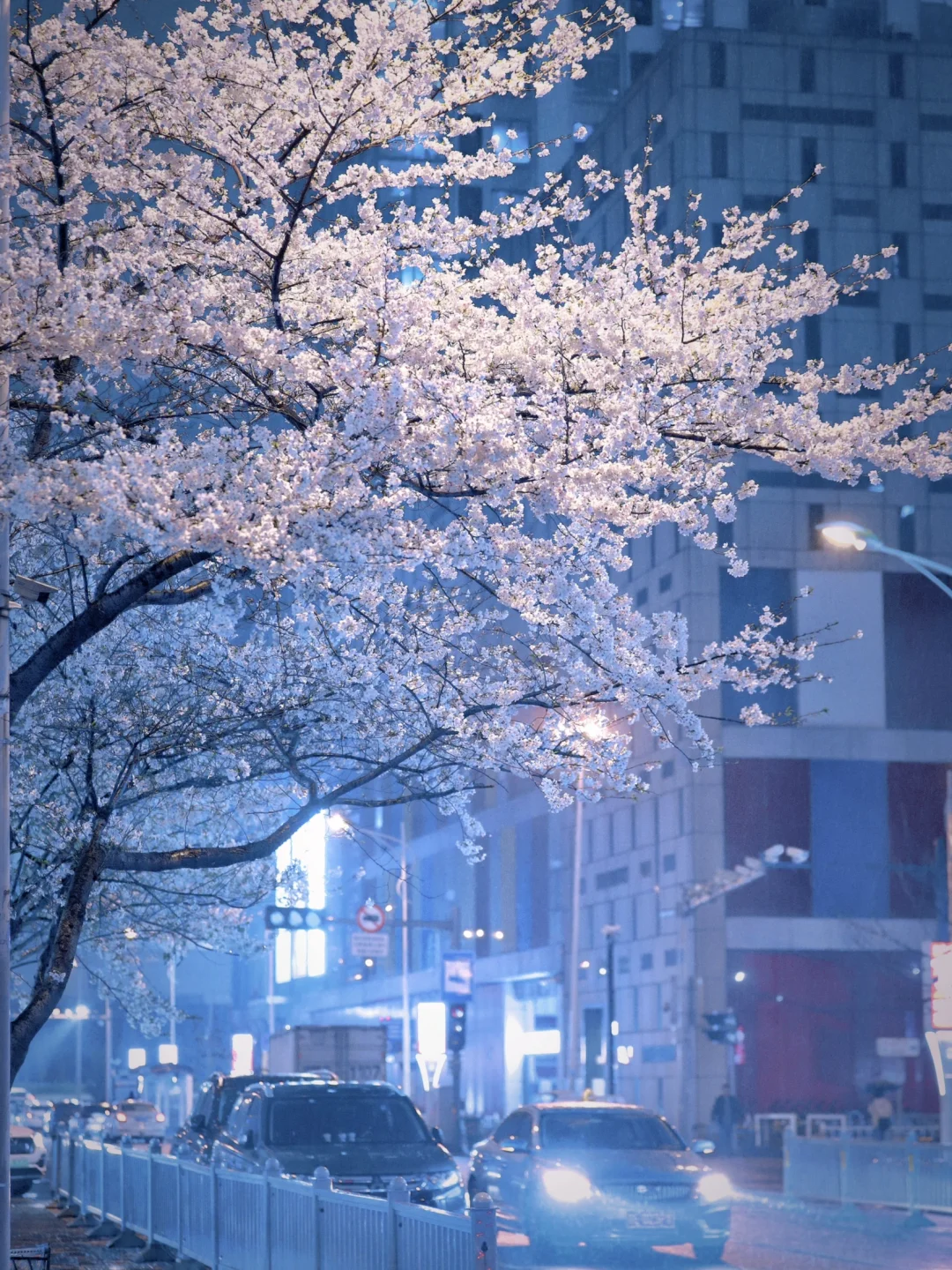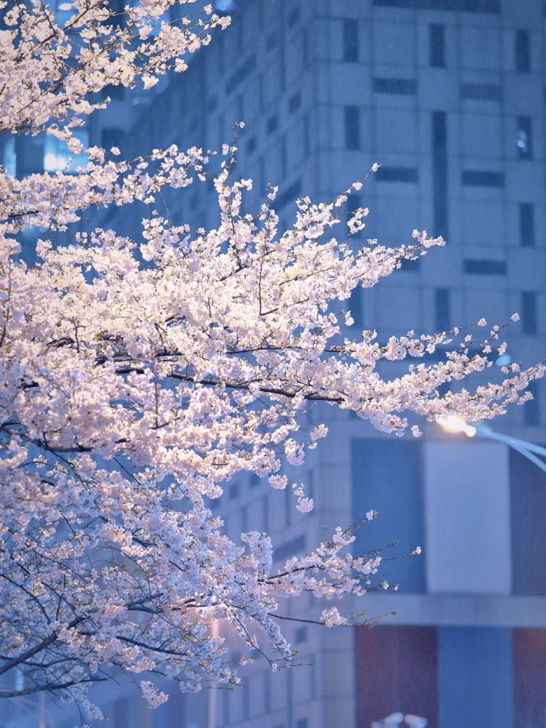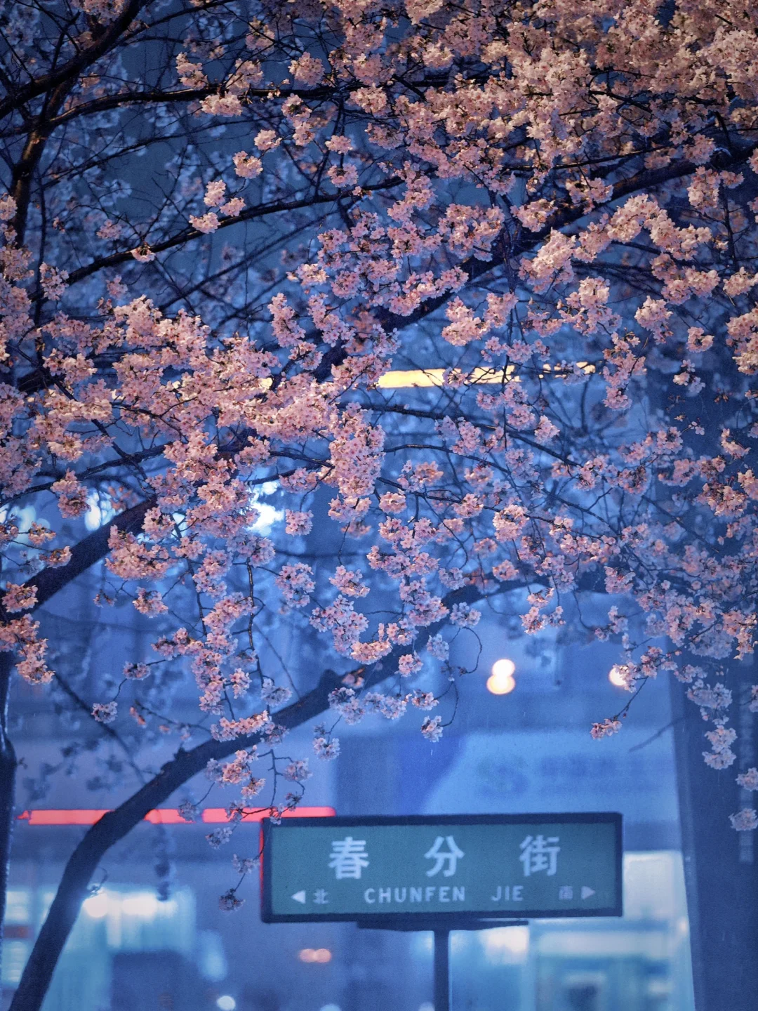 苏州春分街的夜樱🌸在雨中盛开🌧️ 雨滴落下🌧️ 在路灯的照射下✨ 好似天上坠落的无数繁星🌌 温馨而又浪漫💙 . 📍苏州春分街 .