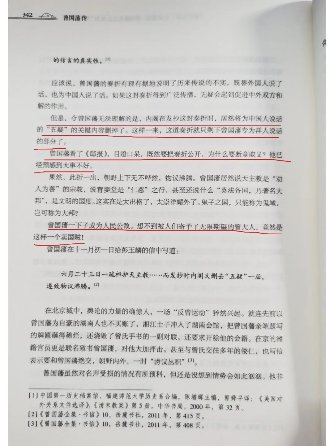 朝廷的想法——曾国藩来背锅,成为刽子手。朝廷想利用民愤和洋人开战,争面子。公布的奏折内容仅留下为洋人的辩解,把为老百姓的申诉全部删掉。