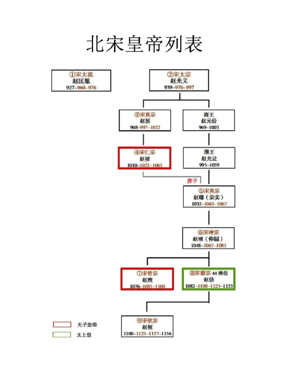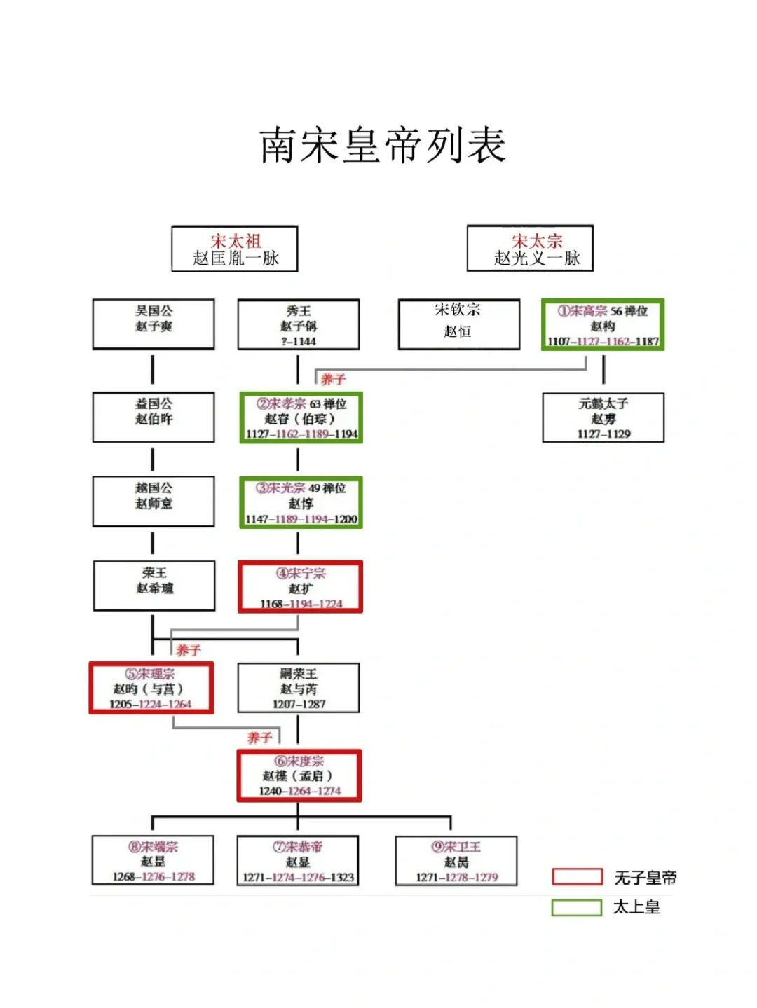 2⃣北宋除赵匡胤,其余都是赵光义后代;南宋除赵构,其余都是赵匡胤后代。