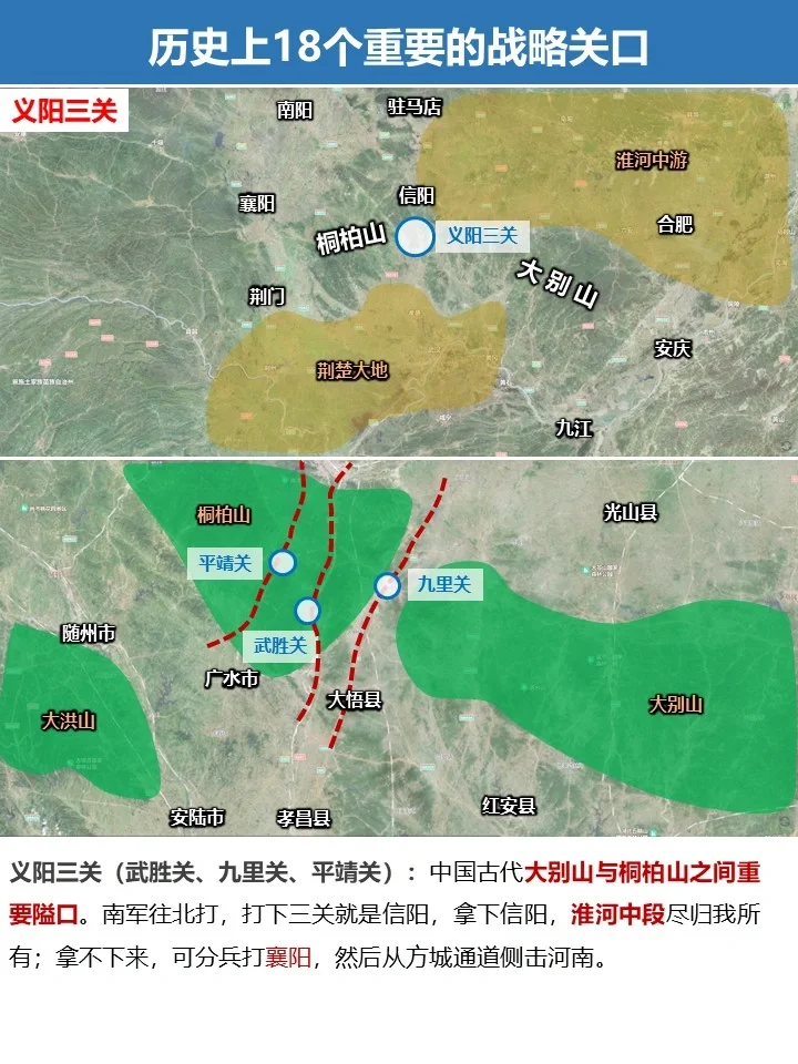 大别山与桐柏山间重要隘口。南军往北打下三关就是信阳,拿下信阳,淮河中段尽归所有;拿不下来可分兵襄阳,侧击河南。
