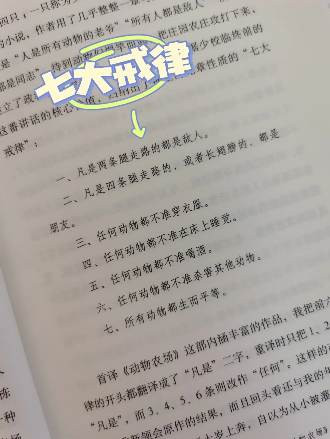📝作者:英国,乔治•奥威尔 📔《动物农场》描绘了一个生动的动物圈,动物们揭竿而起,摆脱了主人的管理,开始了自己当家作主的生活。 然而就实现平等,没有压迫,没有PUA了吗? 🐖猪不再是笨头笨脑的形象,格外的聪明与精明,与人做起了生意。 🐎老实的老马继续耕耘,只是换了个服务的主人罢了。 🤷所以,好好干吧朋友吧,无论是动物农场,还是人类社会,自己强大了才可以对自己负责,不然就只是为谁效力的问题喽。 🏘 《动物农场》是一场变本加厉的反抗。每个动物扮演着不同的角色,也走向不同的命运。 🐷猪:举起了赶走人类的大旗,胜利果实的既得利益者。只是,猪坐上了人的交椅,比人更加贪婪。 🐴老马:猪的粉丝,忠实追随者。在猪画的“大饼”下,勤勤恳恳,任劳任怨。 🌵驴:有独立的思考能力,猪的假粉。进可追随,退可自保。 🐦乌鸦:摇摆不定的墙头草。来去之间,依旧生活在自己的美梦中。 🐶狗:新主人的保镖、打手。蕞强护卫队,谁与争锋。 🐤母ji:蕞有骨气的动物,宁可自己亲自摧毁,也不把果实留给新主人的小生产者。 🐑羊:猪的盲从者,宣传队干事。一曲高歌献四方。 🐱猫:孤傲的喵,眼里放不下猪,却难逃猪蹄的蹂踩。终是有菱角的石头,还未磨圆,已碎成粉。 🐾所有的动物都是平等的,不过有些动物,生来比别的动物更平等。 👀农场,就是一个小小的世界,我们又是哪只动物呢?