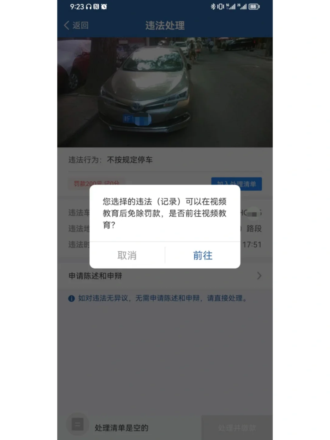 ✅天津违停,不罚钱。 1⃣昨天不小心违停了,一月前被警告过。 2⃣昨天短信通知驶离,没看到手机。错过❗️ 3⃣果然收到罚款200处理结果。 ❗️❗️❗️执法人性化,赞赞赞。 ❗️❗️❗️12123新功能,看视频参加继续教育。 ❗️❗️❗️省钱200大洋。