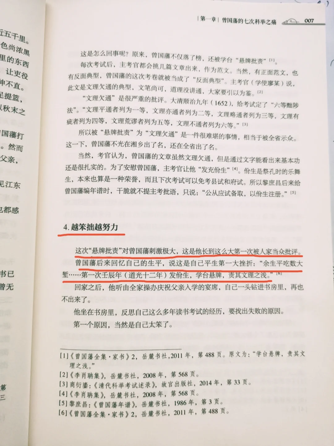 鸡娃和名师还是有用的!曾国藩诠释后天努力比先天智商更重要! 🌈 曾国藩力挽狂澜创建湘军击败太平天国、开启洋务运动,影响了清王朝乃至中华民族的发展。 ❤️ 可是你相信吗?🤔就是这么一个看起来无所不能、无坚不摧神话似的英雄,考秀才考了7⃣年。多少人两三年考不上就放弃了,他却坚持了六年,将所有的嘲笑和讥讽化成一往无前的勇气,从湖南的一个普通农民一步步走上庙堂。他是如何做到的? 🌟 3⃣代人的努力,鸡娃还是有必要的。 他爷爷因文盲而吃大亏,从此励志要让后代进入读书人的圈子。他用自己的辛勤劳作、勤俭持家积累财富,为儿子、孙子潜心读书创造条件,蕞终曾国藩帮他爷爷实现了这个梦想。 📃 勤能补拙,逆商发力,名师指导也是有用的。 6⃣次科考6⃣次落榜,由于自知天生愚笨,所以失败是理所当然,不因失败而懊恼,甚至放弃,而是继续勤奋努力提升自己。 第6⃣次考试被 “悬牌批责”( 曾国藩的考卷被全省公开认定为反面案例),可以说是开启了人生系列挫折的序幕,放在旁人可能会一蹶不振放弃科举之路,但曾国藩此时“逆商”发力,越挫越勇,从“省级名师”对自己考卷的点评中认识到了根本问题,他痛定思痛,奋发图强,用1⃣年时间复盘前六次所有考卷,终于实现凤凰涅槃,并一路高歌猛进连中进士、举人,从此开启了他的“开挂人生”。 🌈 尚拙开启人生,因为认为自己不聪明,工作和生活中才会脚踏实地、不走捷径,筑牢了基础,才能让自己走的更稳更远。逆商在工作中更是难能可贵,但即使具备这2⃣个特质,也不能让曾国藩立于不败之地。人的性格中还有很多缺点需要改正,看曾国藩是如何彻底改正缺点,开启“开挂人生”的! ↩️