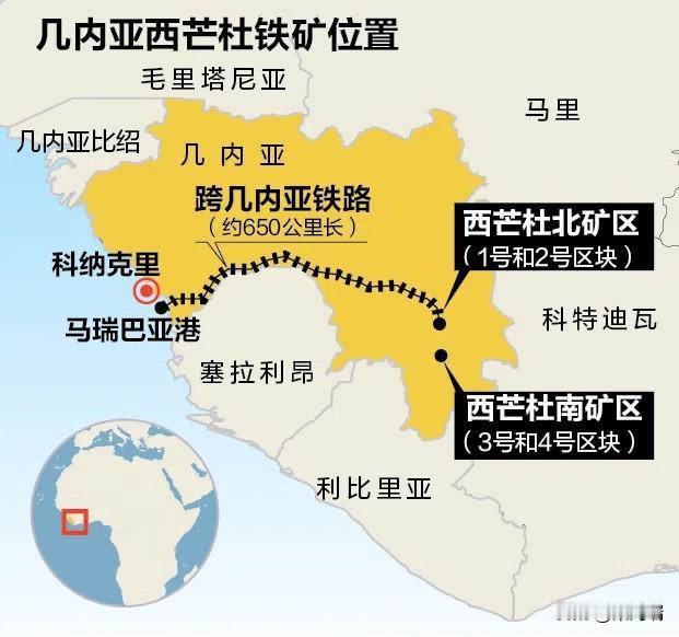 全球最大的铁矿:西芒杜铁矿正式投产 西芒杜铁矿位于几内亚东南部凯鲁阿内省,属于世界级的大型优质露天赤铁矿,矿体集中、埋藏浅、易开采,已探明储量44亿吨,平均全铁品位65%以上。建成后总产能可达1.2亿吨/年。 主要股东包括中铝集团,山东魏桥,宝钢集团新加坡韦立国际集团(主要承担铁矿石运输),澳大利亚力拓集团和几内亚财政。