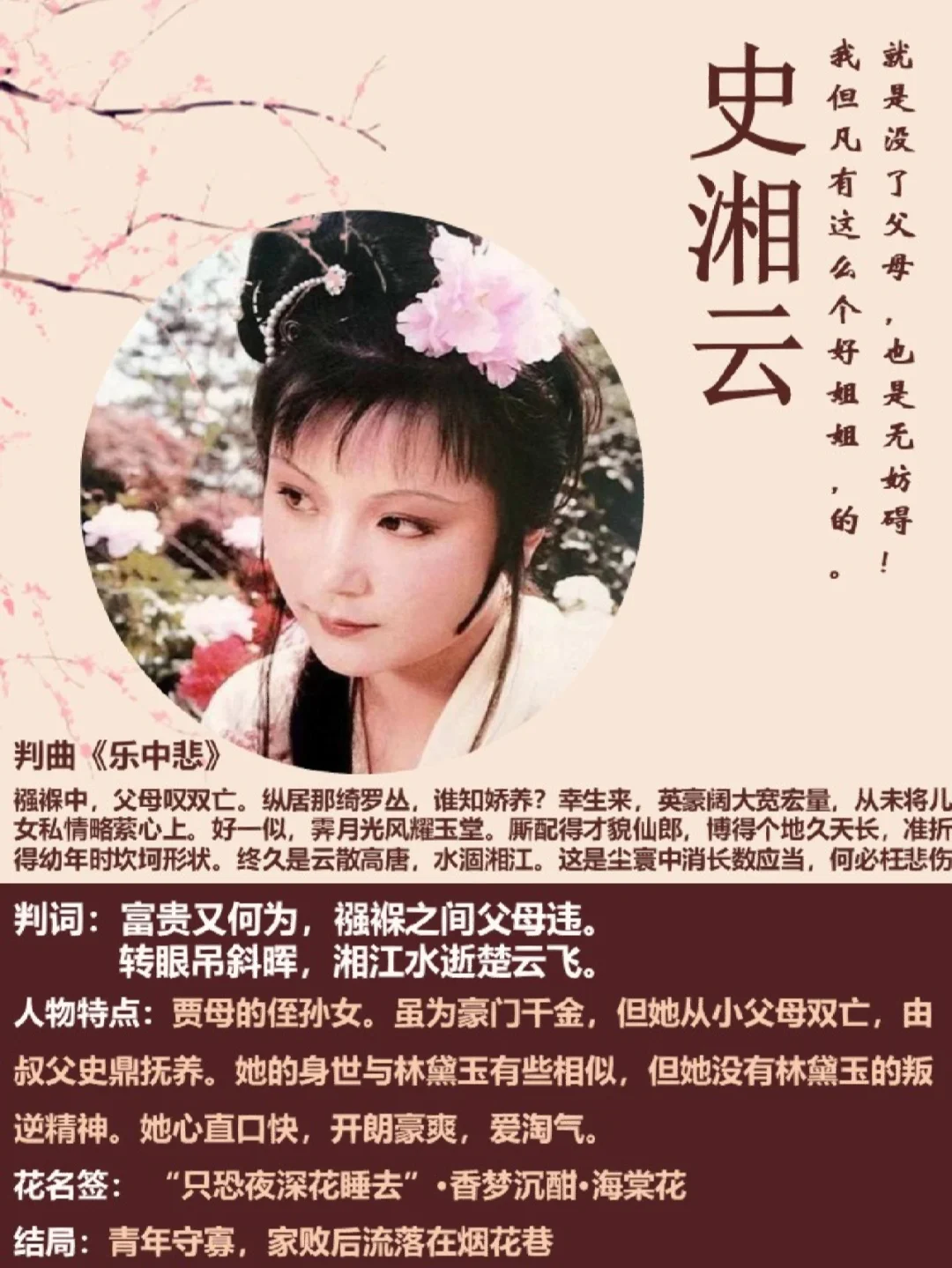 🍃她的身世与林黛玉有些相似,但她没有林黛玉的叛逆精神。她心直口快,开朗豪爽,爱淘气。