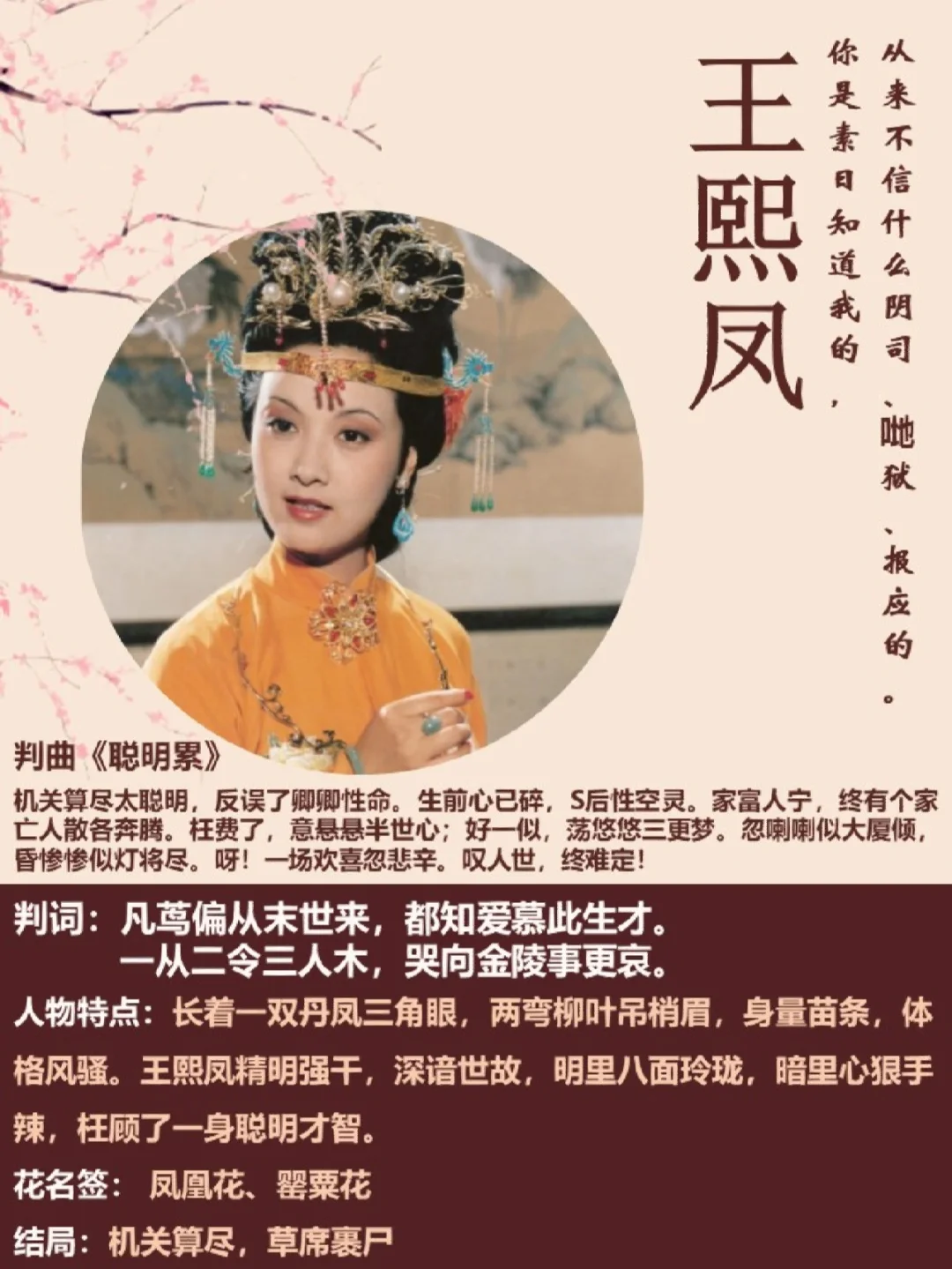 🍃结局:凤姐的结局是“一从二令三人木,哭向金陵事更哀”。