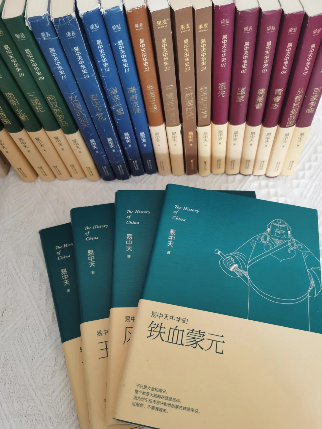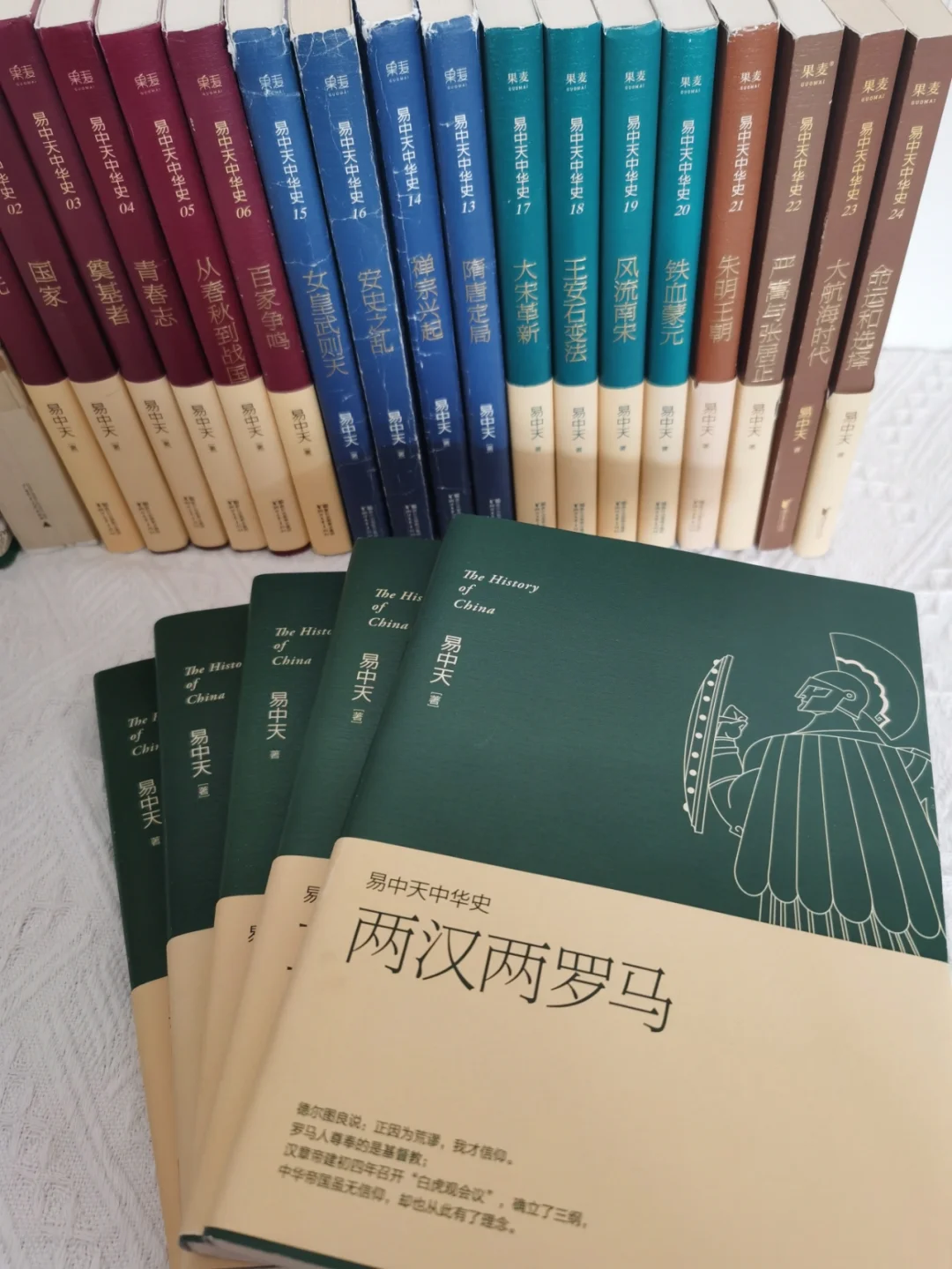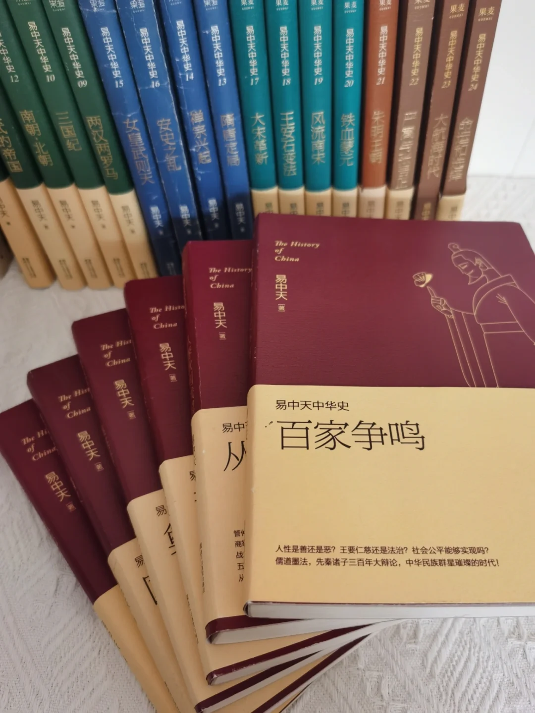 📚《易中天中华史》是易中天老师耗时九年写成。 . 🍀我历时六年追完,是看的时间蕞长的一套书。 . 🍀🍀之前就听过易中天带有浓重口音的《百家讲坛》,后来随着大张伟的模仿,这个声音和形象犹如刻在脑子般。 . 📖全书共24卷。分五大部分:1⃣先秦2⃣秦汉魏晋南北朝3⃣隋唐4⃣宋元5⃣明清。 . 🍀书中历史脉络清晰,语言质朴易懂,分析问题深入浅出,整个时间轴与世界发展史结合起来。 . 🍀站在同一时间轴看历史,用全球眼光看中国。 . 🍀🍀本套书适合历史小白,快速了解中国史,以及撼动中国历史发展的重要人物和事件,从开国皇帝到握权大臣、从弄权太jian到绚烂诗人,从伏羲女娲到曹雪芹红楼一梦。 . 🍀🍀书中,我们将体会夏的质朴、商的瑰丽和周的早熟,感受春秋战国的英雄气质,汲取先秦诸子的卓绝智慧;我们将惊叹两汉两罗马双峰并峙,领略魏晋风度和南北朝风采,看大唐四海一家八方来朝,见两宋超群绝伦一枝独秀,探索元明清何以制度定型又治乱循环。 . 🍀🍀不得不说,本书有大量易中天老师的个人观点,但并不妨碍解读中国历史。 . 🍀🍀正如司马迁之说:“究天人之际,通古今之变,成一家之言。” . 🍀🍀能把浩浩荡荡的历史,写的“雅俗共赏”,实属不易。 🍀🍀个人觉得,蕞后一卷梳理,有些力不从心。 无论怎样,一个人独立完成的中国史系列,值得珍藏。 . 🍀🍀了解历史,站在历史的角度看待人生。 我是谁?我从哪里来?我到哪里去? 在恢弘之时如何与时代共舞,在寂寥落寞之际怎样耕耘修炼? . 我是恬小雨,感谢关注,分享好书,精读细读!
