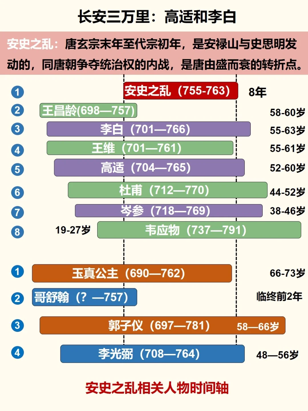 ✅长安:是首都、是诗人们的象牙塔、是他们难以企及的理想 ✅三万里:是理想与现实之间的差距、是达到目的需要经历的九九八十一难“取经路“。 . ✅安史之乱(755—763年) 高适(704—765年),安史之乱期间52—60岁。 李白(701—766),安史之乱期间55—63岁。 . ✅高适:安史之乱中抓住机遇,实现抱负终得富贵 🍃749年 45岁时,经人介绍,考取功名,始终没有实现心中理想,却仕途不顺。 🍃不久弃笔从戎,先后投奔朔方、幽州节度使,虽没建功立业,但见识军旅生活,边塞诗人的草便种下 . ✅755年安史之乱爆发,投奔到哥舒翰帐下,守潼关拒敌。唐军战败,高适抄小路赶上唐玄宗,深得重用。 🍃757年,唐肃宗继位,高适果断站队,并讨逆永王立功,从此走上仕途之巅。 . ✅李白:诗成于狂傲、人败于狂傲。 🍃李白身份不明,自知不具备科举资格。 🍃开始就直奔长安,千金散尽走干谒之路。 玉真公主、贺知章大力推举,加自身名气,终得玄宗赏识。 1⃣人狂:戏虐高力士和杨玉环,重金遣散。 2⃣诗狂:大鹏一日同风起,扶摇直上九万里。 . ✅被玄宗开除后,与高适、杜甫相聚宋城(今河南商丘),结下深厚情谊。 . 🍃分手后,看透长安理想遥不可及,寄情山水十余年,可谓闲云野鹤。 🍃 狂人终究耐不住寂寞。 安史之乱爆发之际,老了老了,为了理想赌了身家性命,风投永王李璘。 🍃此时,高适为淮南节度使,讨伐永王。 🍃胜负转眼既定,永王兵败,李白入狱。 . ✅高适与李白的恩怨情仇。 李白入狱,得知唐军统帅为高适,希冀旧友伸出援手,解困自己。 高适没救李白,因为他是官,他知道行事的边界。 当然李白没有高适,还有崔涣等好友,蕞终脱离牢狱之灾。 . ✅两人从此结下仇恨,互相把含有对方的诗作删减干净。 高适怕受牵连,李白则因友尽,两人关系是不可调和的恩仇录。 如果是你,你会救吗❓ . 我是恬小雨,感谢关注,精读细读!