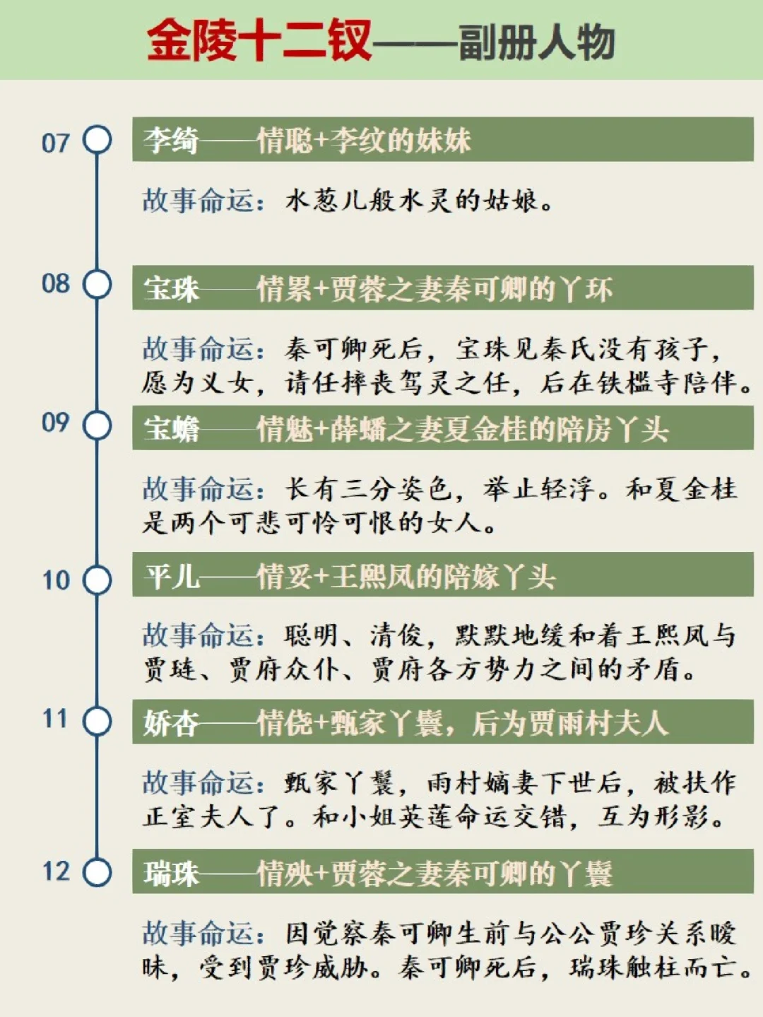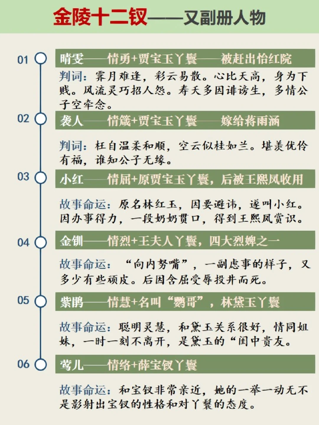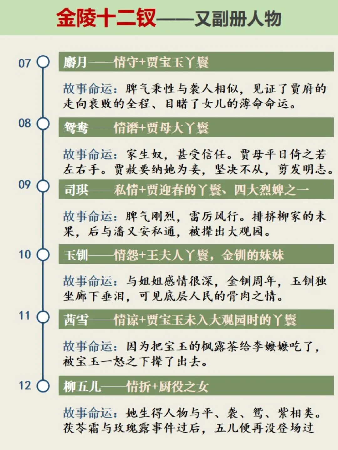 又副册中12人为 “下等”女子,大都是些低于正册、副册中的丫鬟、佣人之类。
