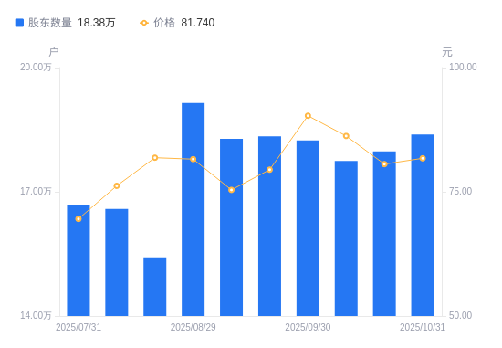 日期A股户数(户)流通A股户均持股数(股)户均持股市值(万元)2025-11-101897774476.1635.292025-10-311838454620.5937.772025-10-201797644725.4938.072025-10-101774704786.5741.282025-09-301824244656.5842.052025-09-191833964631.6436.802025-09-101828064646.5935.032025-08-291914654436.4436.192025-08-201541935508.8445.102025-08-081658695121.0539.02