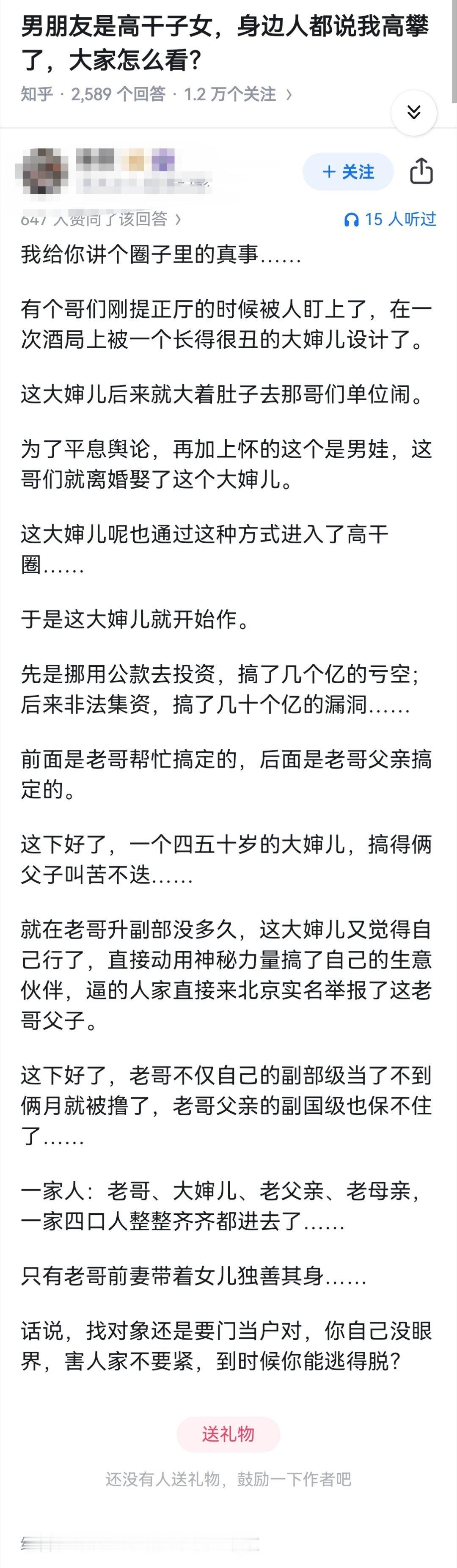男朋友是高干子女,身边人都说我高攀了,大家怎么看?