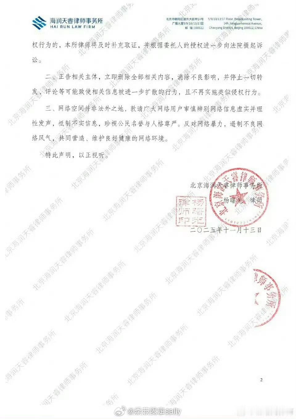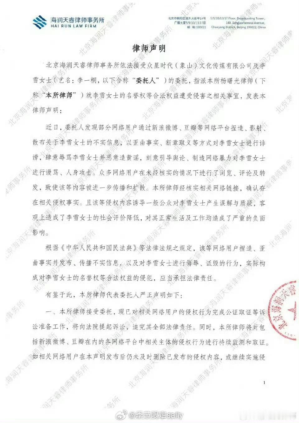 李一桐方开始告嘿维权