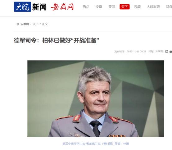 万万没想到,第一个向俄罗斯“开重炮”的国家。 不是美国,也不是日本。 而是一个被打趴下80多年的国家。 11月8日,德国联合行动司令部司令亚历山大・索尔弗兰克中将说的一句话,像突然炸开的信号弹,在欧洲上空搅起不少波澜。“柏林已经做好和莫斯科开战的准备”,这句话经《俄罗斯RT》报道后,很快穿透地缘政治的迷雾,成了整个西方对俄态度的转折点。 这番表态源自德国去年公开的《德国行动计划》,这份一千多页的文件把应对冲突的各个环节都写得很细,明确说要是北约第五条集体防御条款被触发,德国得在180天内完成大规模军事动员。 文件里连交通枢纽调度、后勤物资储备、多国部队接应这些全流程的事都涵盖了,直接把德国定位成北约对俄行动的核心后勤枢纽。 之后,索尔弗兰克在柏林开的联邦国防军年度会议上又补充了细节。他着重说,就算俄罗斯还陷在乌克兰战场上,手里依然有不小的军事力量,已经有能力对北约领土发动小规模攻击。 接受路透社采访时,他还抛出个让人惊讶的判断,说莫斯科“最早明天”就可能发起进攻,这话把欧洲大陆的紧张气氛推到了更高点。 这种强硬态度不是军方自己说了算,德国政府高层已经达成了一致意见。德国总理默茨之前公开说,想通过外交解决乌克兰冲突的路已经走不通了,唯一的办法就是靠加强军力来撑住和平局面。 国防部长鲍里斯・皮斯托里乌斯跟着表态,直说“我们的生活方式正处在危险中,这不是吓人的话”,两人的话相互呼应,能看出来德国对俄政策已经彻底变了方向。 默茨政府上台后,德国完全放弃了默克尔时代的平衡外交路线,不少实际动作早就露了苗头。先看军事部署,德国已经在立陶宛长期驻扎了装甲旅,把军事存在直接推到了东欧前沿。 再看装备采购,政府敲定了250亿欧元的军购计划,清单里有1000辆“豹”-2坦克和2500辆“拳击手”装甲车,这么大的规模足够改变欧洲常规军事力量的布局。 还有对乌援助的红线,德国取消了对乌援助武器的射程限制,允许乌军用德制装备打击俄罗斯本土,这个决定直接突破了之前的战略底线。 对乌克兰的支援力度不断加大,也能说明政策的转向。10月17日,皮斯托里乌斯在“乌克兰防务联络组织”会议上宣布,德国会给乌克兰提供价值超过20亿欧元的军事支持,里面包括红外成像型IRIS-T防空系统、精确制导武器和大量弹药。 这批装备不光能解决乌克兰眼下的急需,还通过深化两国国防合作协议,把乌克兰的防御体系和德国军工产业链紧紧绑在了一起。德国甚至还在推动欧洲国家“暂时借出”现有的“爱国者”系统支援乌克兰,响应泽连斯基想要27套该系统的迫切需求。 更有争议的动作在经济领域。德国还在推动动用之前冻结的1700亿欧元俄罗斯资产,打算把这笔钱变成给乌克兰的长期援助,俄罗斯方面认为这种做法是公然侵犯财产主权。 与此同时,德国军工企业在加速扩大生产,政府把大量资源投进军事现代化里,想打造“欧洲最强常规军队”,但这个目标和德国现在的经济状况形成了明显反差。 2024年德国GDP萎缩了0.2%,2025年的增长预期也只定在0.2%到0.4%的小幅区间,经济活力降到了二战以后最低的时候。 没了廉价的俄罗斯天然气供应,德国制造业只能转向成本更高的能源结构,化工、钢铁、汽车这些支柱产业全都受了挫,企业搬到国外的情况经常发生。 建筑行业遭遇了崩盘式的下滑,消费者信心一直很低迷,绿色转型花了不少钱却没看到多少效果,“欧洲病夫”这个标签又重新贴回了这个欧盟核心国家身上。 俄罗斯方面对德国的一系列动作给出了明确回应。俄罗斯已经多次说过,没打算攻击北约,把德国炒作的“威胁论”说成是为增加军费找借口的荒唐说法。 俄罗斯外长拉夫罗夫甚至直接提醒,德国境内正出现“明显的纳粹复兴迹象”,话里能听出对德国军事扩张的强烈警惕。这种对立情绪一直升级,让俄乌冲突向外扩散的风险明显增加。 索尔弗兰克提到的80万北约兵力部署计划不是只写在纸上,可实施过程中藏着不少隐患。这个计划特别依赖德国国内的交通设施,战时像关键桥梁这些重要节点,很容易成为导弹打击的目标。 索尔弗兰克自己也承认,要是部署出现延误,北约对俄罗斯的战略威慑就会完全失效,这番实在话暴露了强硬态度背后的现实短板。