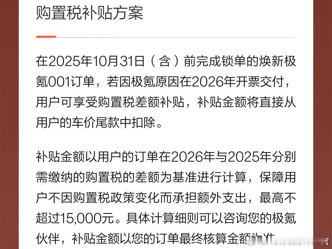 距离年底购置税补贴退坡只剩一个半月了,公布购置税补贴方案的厂家也越来越多。不过这个月再不下单,可能连补贴都赶不上了