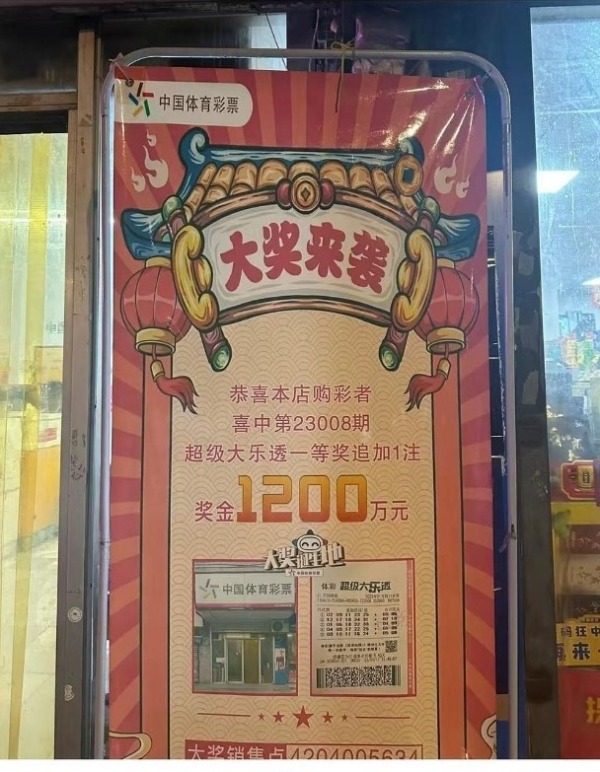 红星新闻记者查询湖北体彩官网,发现一篇发布于2023年1月29日的文章中写明:第23008期全国共开出11注一等奖,其中2注花落湖北省,分别为武汉和孝感两市。其中,武汉大奖诞生地05634销售点的购彩者喜中1200万大奖。