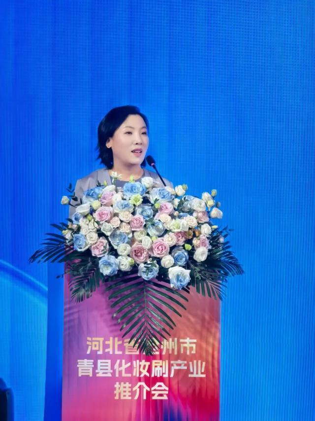 她在主旨发言中表示,青县用二十余年的坚守与创新将"小刷子"做成了"大产业",青县拥有化妆刷企业253家,从业人员超1.6万人,产品远销20多个国家和地区,不仅在国内占有重要的市场份额,更是远销海外,每年有5亿支化妆刷从这里走向全球,支撑起年产值30亿的“颜值经济”,“青县刷业”已成为彰显国家轻工制造实力的靓丽名片。2021年,青县被授予“中国化妆刷之乡”荣誉称号。谢帆主任表示,我们中心将一如既往地充分发挥平台优势和资源整合能力,通过标准引领、组织参展、举办推介、开展国内外交流等多种形式的活动,支持青县化妆刷产业做大做强,推动青县化妆刷从单一出口向全球产业链协同升级,实现从“卖全球”到“智联全球”的新跨越。