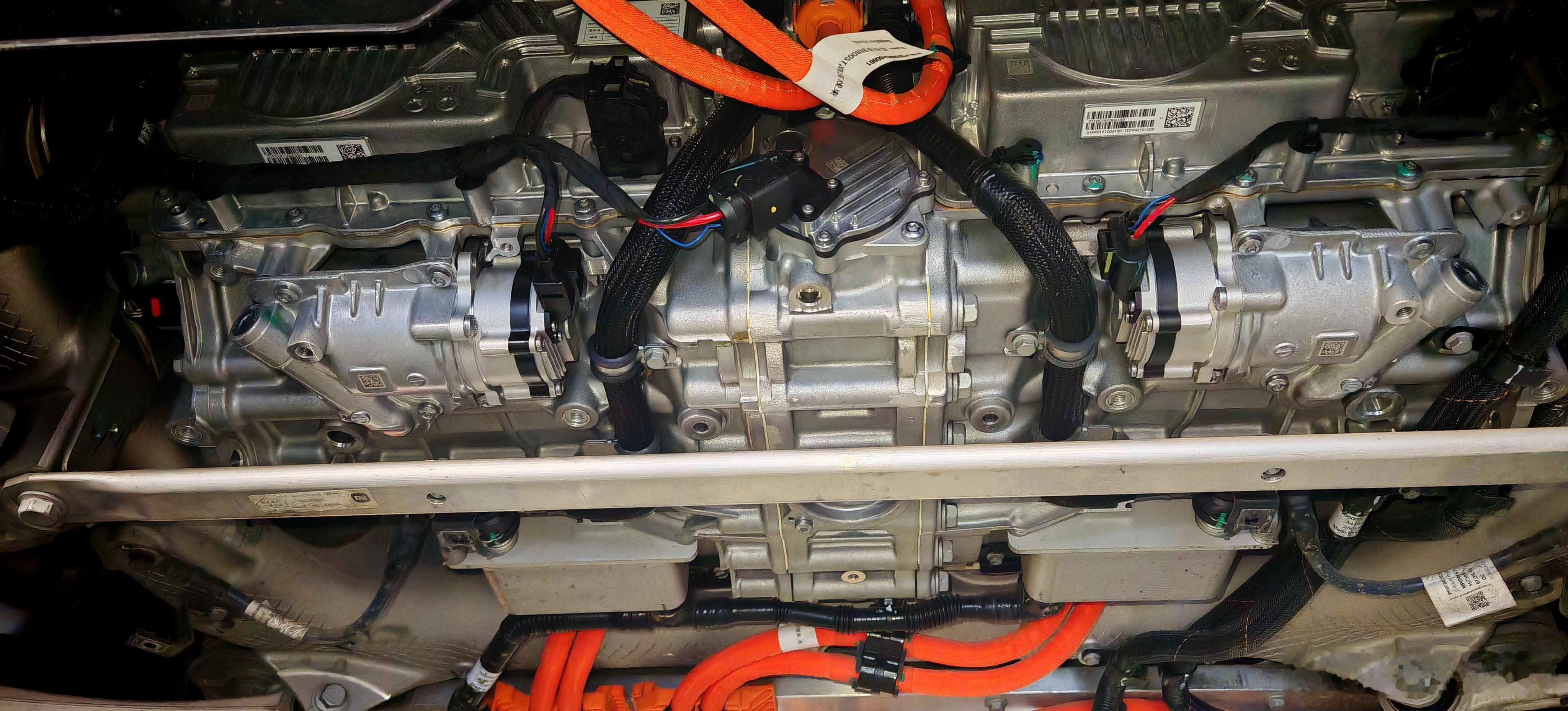 为了追求超强动力,强悍瞬时扭矩,布置后双电机,看把杆系憋屈的,关键是电机壳与中间壳密封不到位,渗油