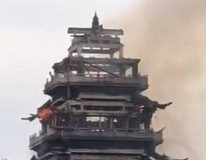 江苏一仿古寺庙突发火情,火势凶猛建筑只剩框架,起火原因正在调查