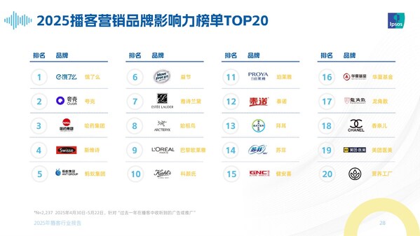 (美通社头条)10月27日,由益普索携手播客机构日谈公园出品,喜马拉雅、日光派对、声动活泼、凹凸电波、播客公社等平台及播客机构共同提供支持的《2025年播客行业报告:声入人心》正式发布。