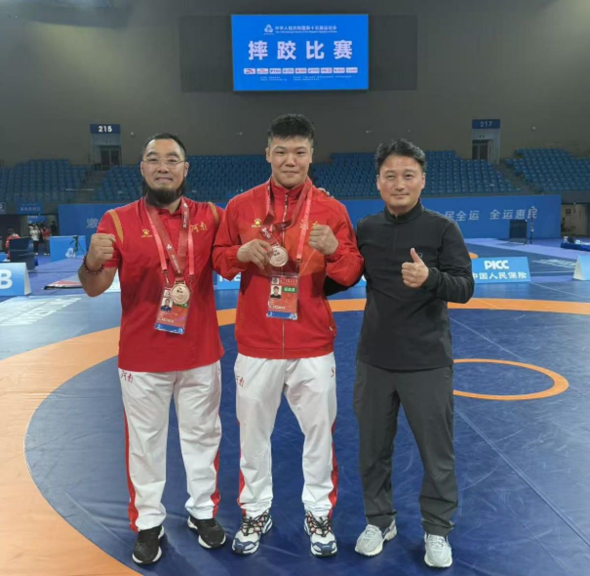在11月12日举行的全国第十五届运动会男子自由式摔跤86公斤级比赛中,由漯河市体育运动学校培养输送的河南选手张恒发挥出色,在与新疆队选手的铜牌争夺战中以绝对优势取胜,为河南省夺得一枚宝贵的铜牌。这一成绩实现了河南男子自由式摔跤在全运会赛场上新的突破,展现了河南摔跤运动的蓬勃潜力。