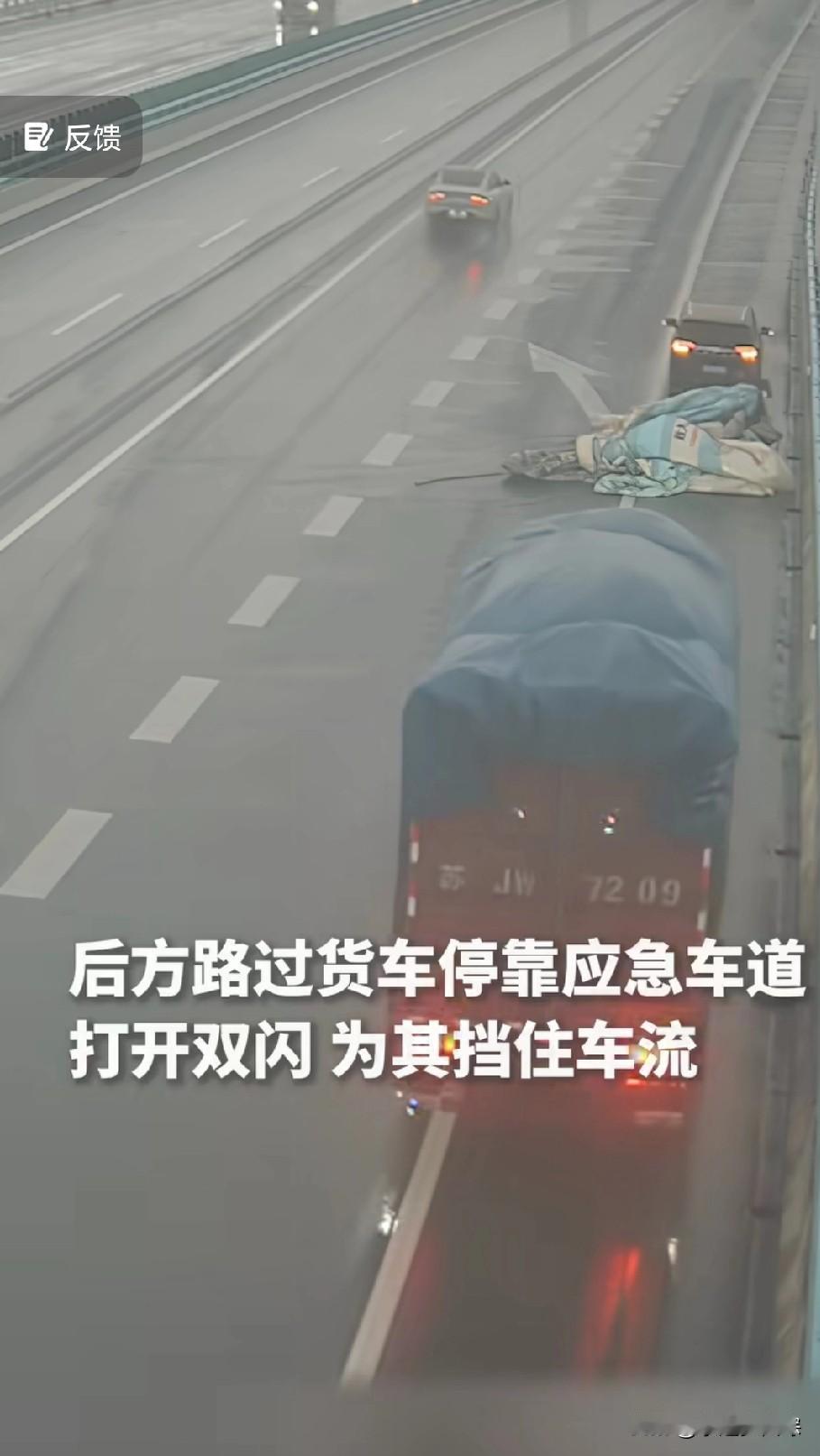 太让人揪心了!高速上货车篷布突然掉落,看着都心惊胆战。这要是后车躲闪不及,后果简直不敢想! 万幸遇到了两位守护天使——杨先生果断停车清理障碍,金大哥更是冒着被罚的风险打开双闪守在后方。这一守,守的不是路,是过往车辆的安全线啊! 明知可能会被扣分罚款,你们还是义无反顾地站了出来。这份担当,比任何奖状都闪亮!你们的方向盘握住的不仅是自己的安全,更是对素不相识生命的珍重。 谢谢你们!在危机时刻挺身而出,用最实际的行动告诉我们:路上永远有温暖。看到这样的守护,整条高速都安心了!高速上货物掉落 货车遮雨篷布 货车布篷布