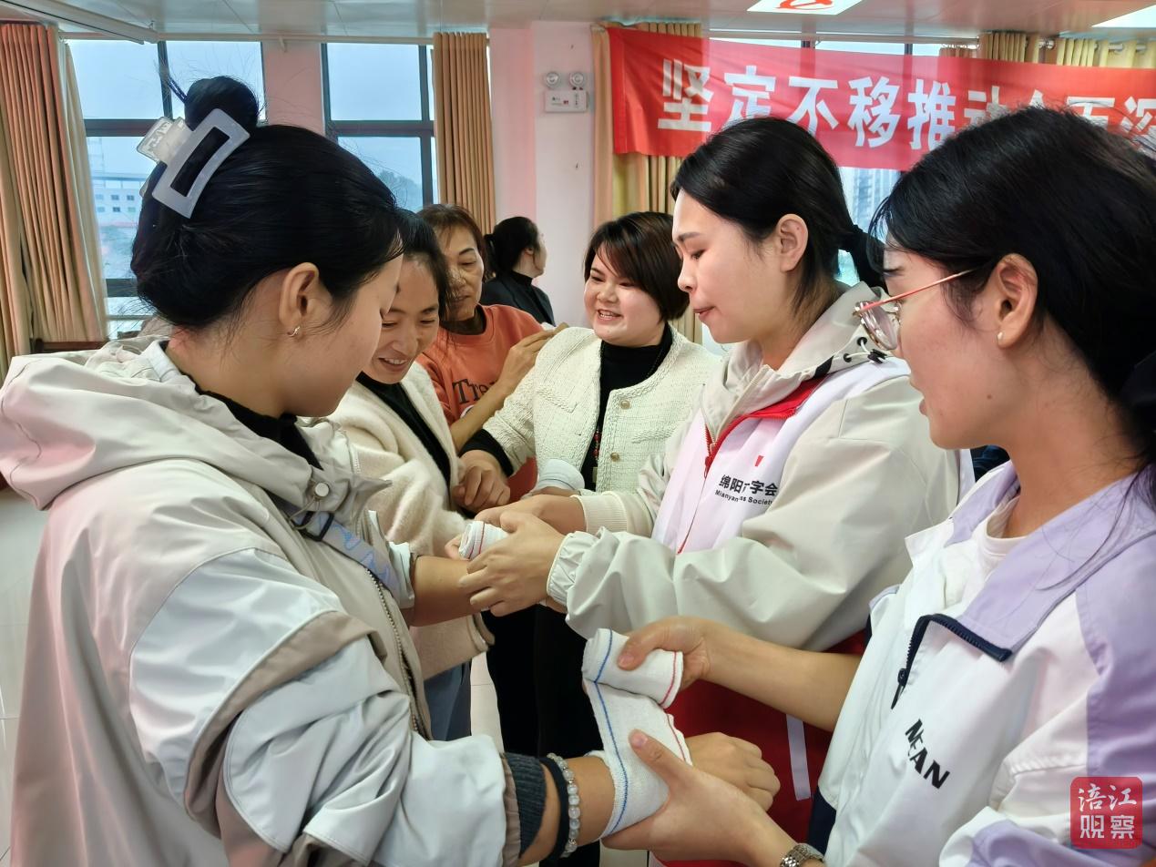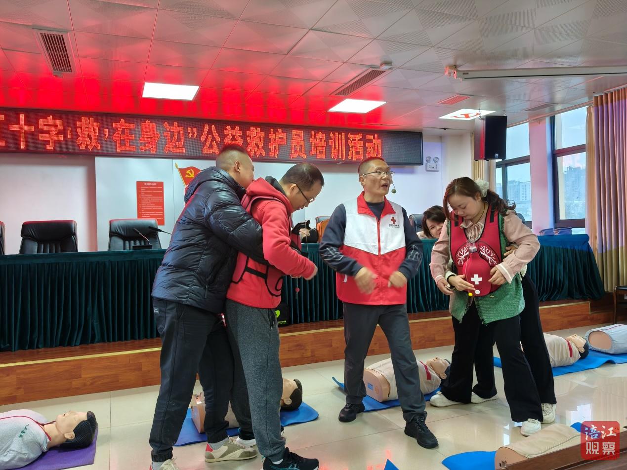 培训采取“现场理论学习+实操演练”的方式,重点围绕心肺复苏(CPR)、自动体外除颤器(AED)使用、气道异物梗阻急救、创伤包扎等实用技能展开。红十字急救人员用通俗易懂的语言,通过模拟示范对应急救护知识进行生动讲解,手把手指导学员进行操作,让学员更加深刻、直观地了解和掌握自救互救技术。