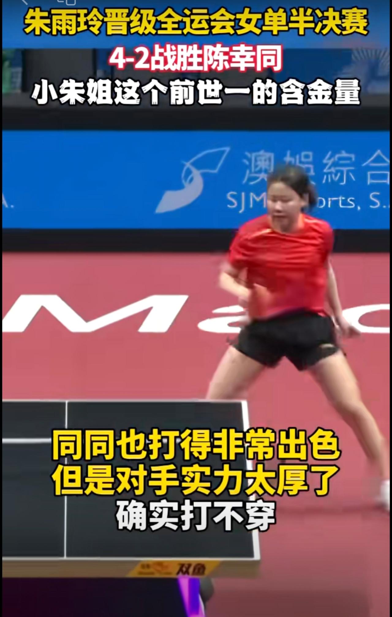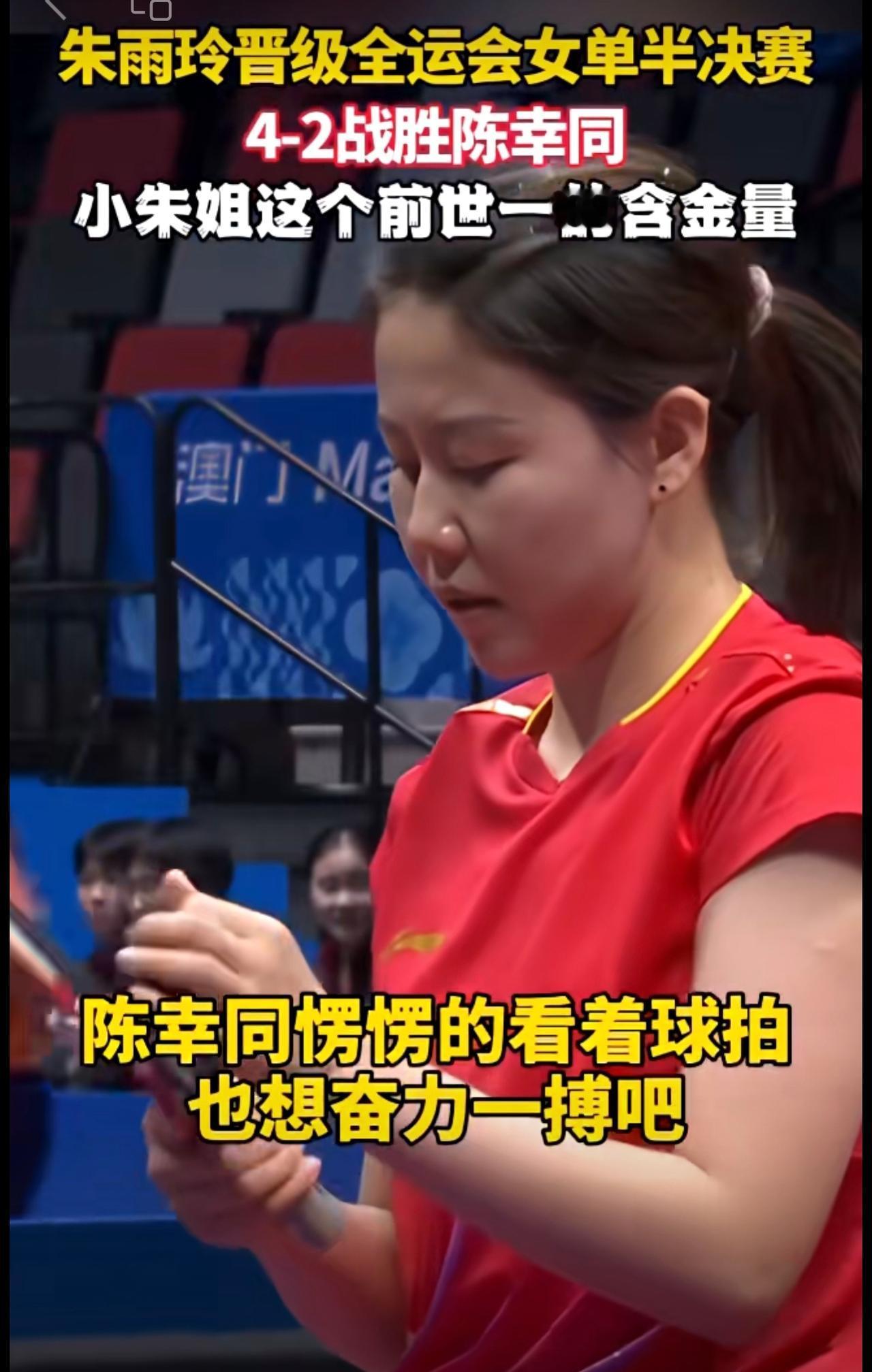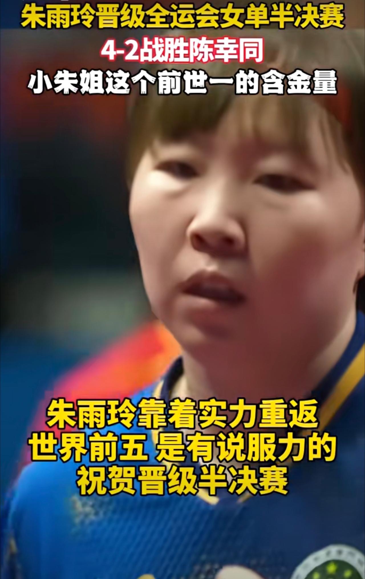朱雨玲晋级全运会女单半决赛 4-2战胜陈幸同,小朱姐这个前世一的含金量!朱雨玲:热爱抵岁月漫长, 打得太感动了, 实力已经恢复到很高的水平了!