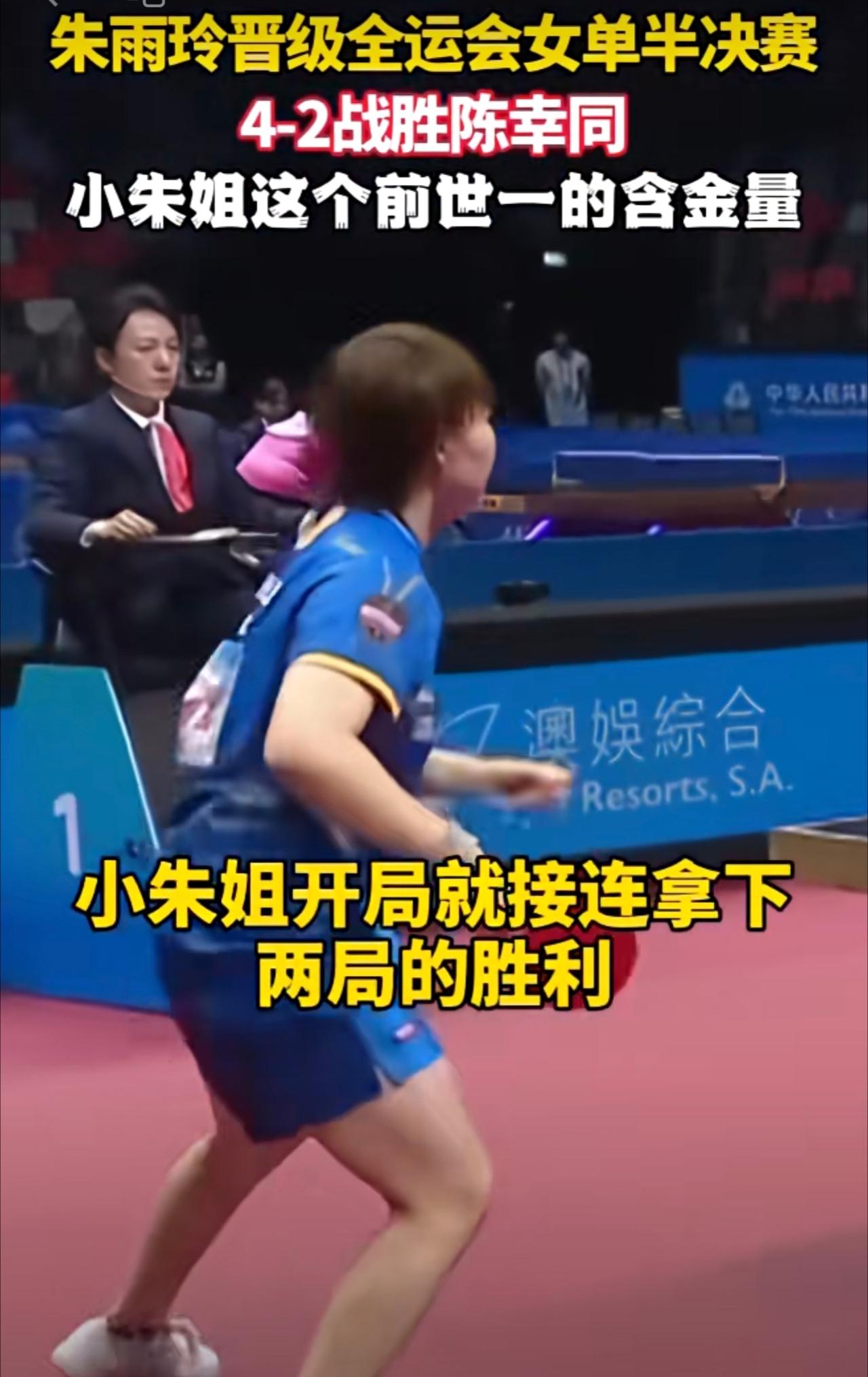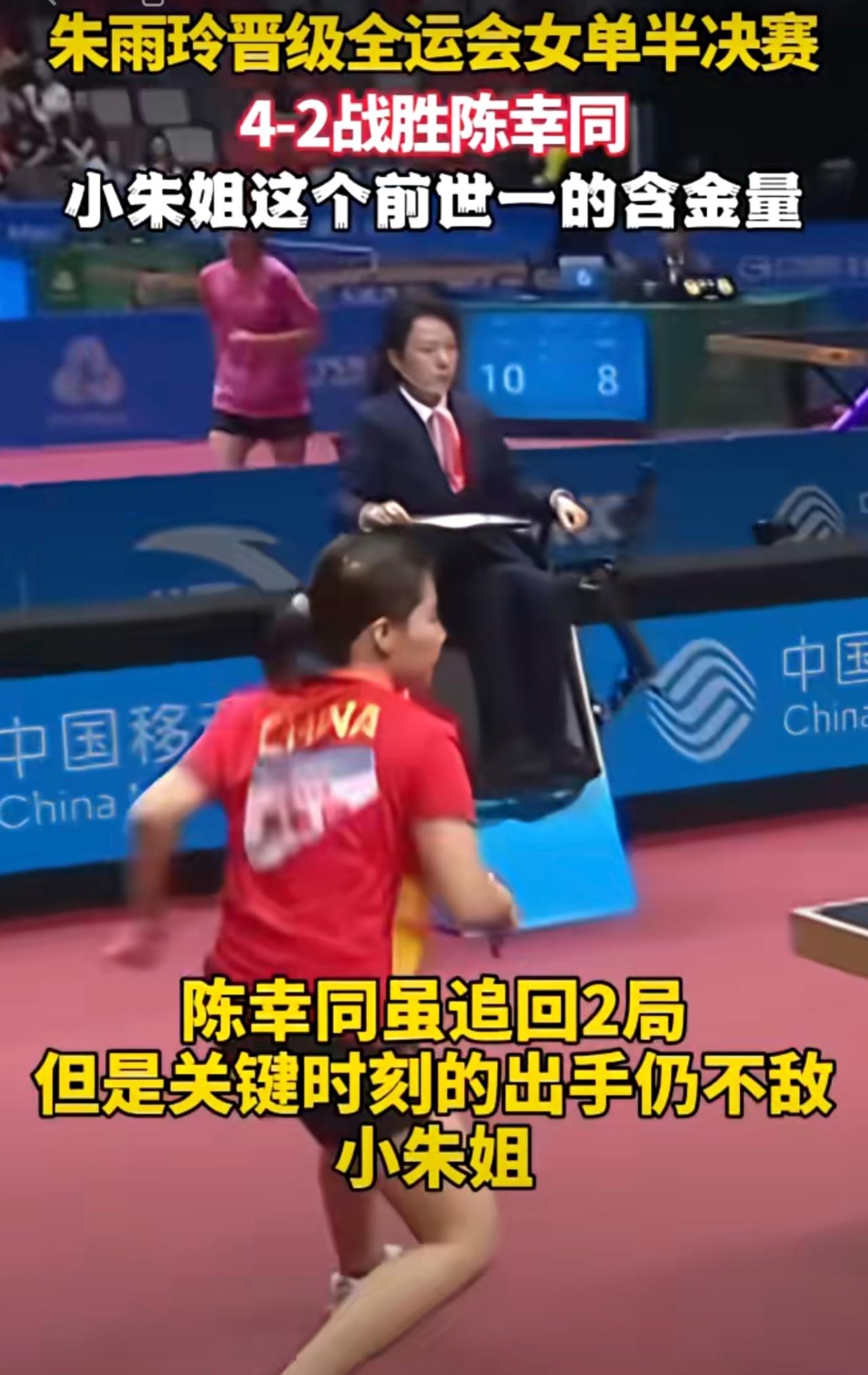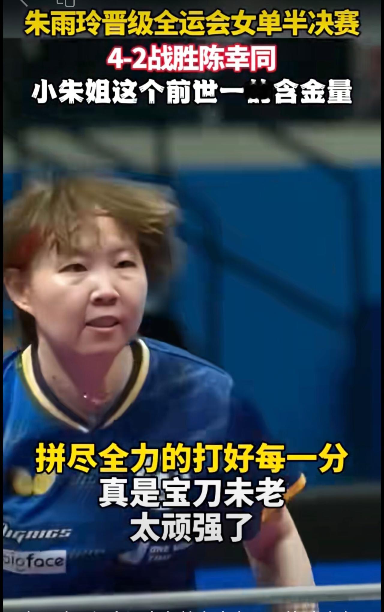 朱雨玲晋级全运会女单半决赛 4-2战胜陈幸同,小朱姐这个前世一的含金量!朱雨玲:热爱抵岁月漫长, 打得太感动了, 实力已经恢复到很高的水平了!