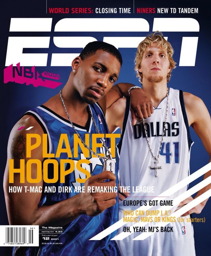 图中两名球员是特雷西-麦克格雷迪和德克-诺维茨基。