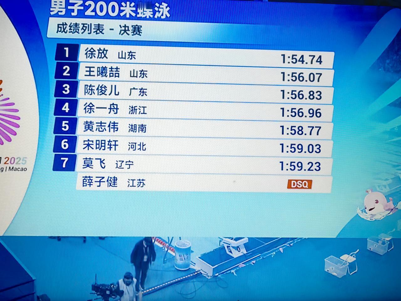 全运赛场山东男子游泳运动员徐放、王曦喆在男子200米蝶泳决赛中后程发力,先后反超此项目曾经的领先者主场作战的广东队陈俊儿,拿下关键的一金一银,在奖牌榜上为山东领先东道主立下汗马功劳!祝贺🎉加油💪