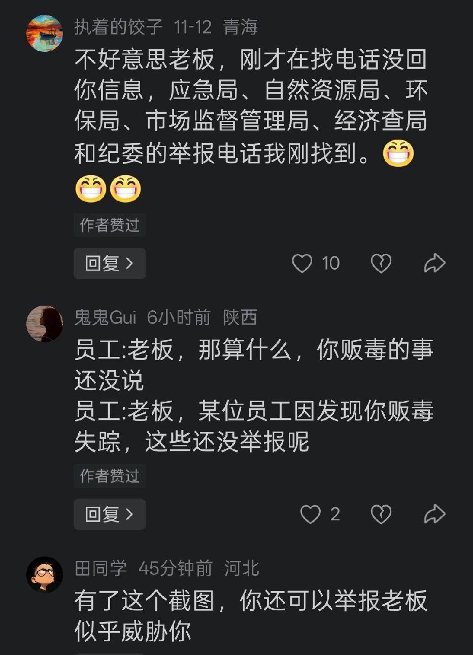 看到这位网友的截图 还有一堆神评论 真的是笑不活啦 你们说 他该怎么回复老板啊[捂脸][捂脸][捂脸]