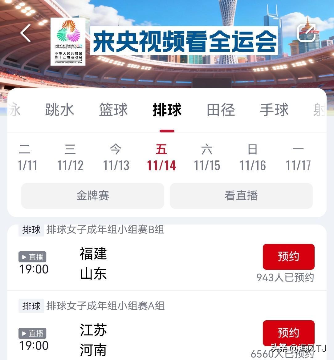 央视频将现场直播全运会女排小组赛 全运会女排小组赛11.14继续
