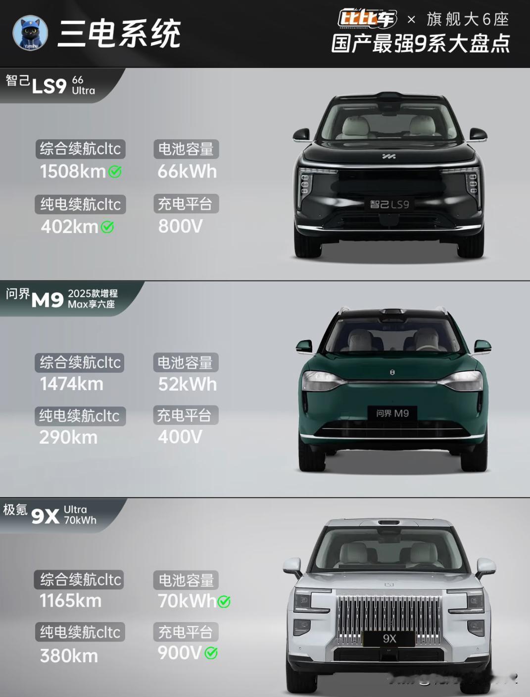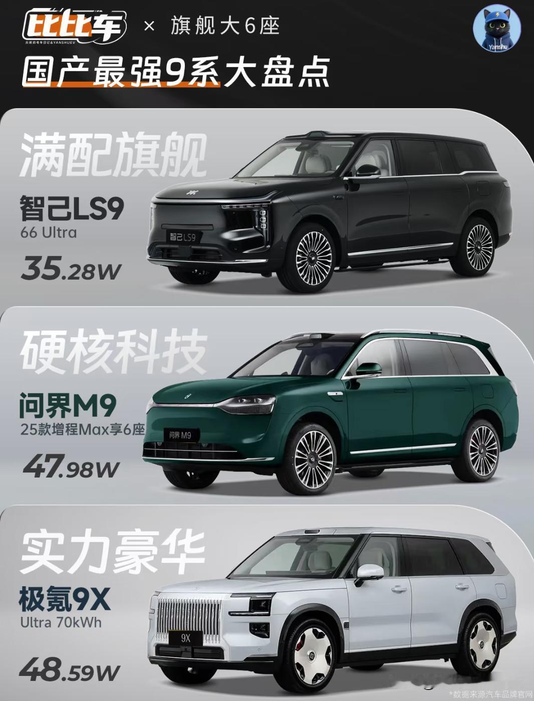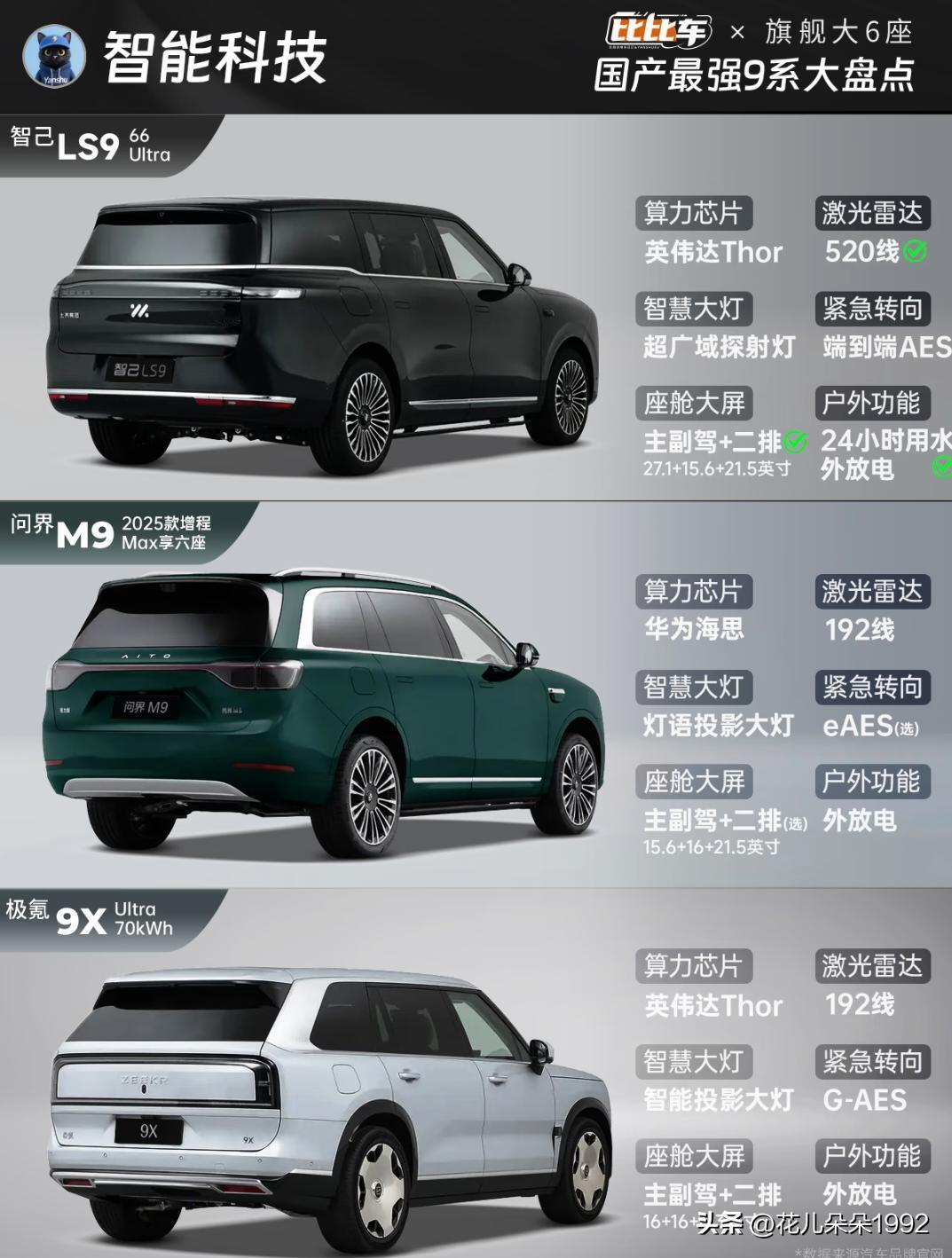 三款国产9系大6座SUV。 双向24度后轮转向搭配灵蜥底盘3.0,LS9才是最好开大六座,1500km+的续航有点离谱,LS9基本没有出行焦虑了。