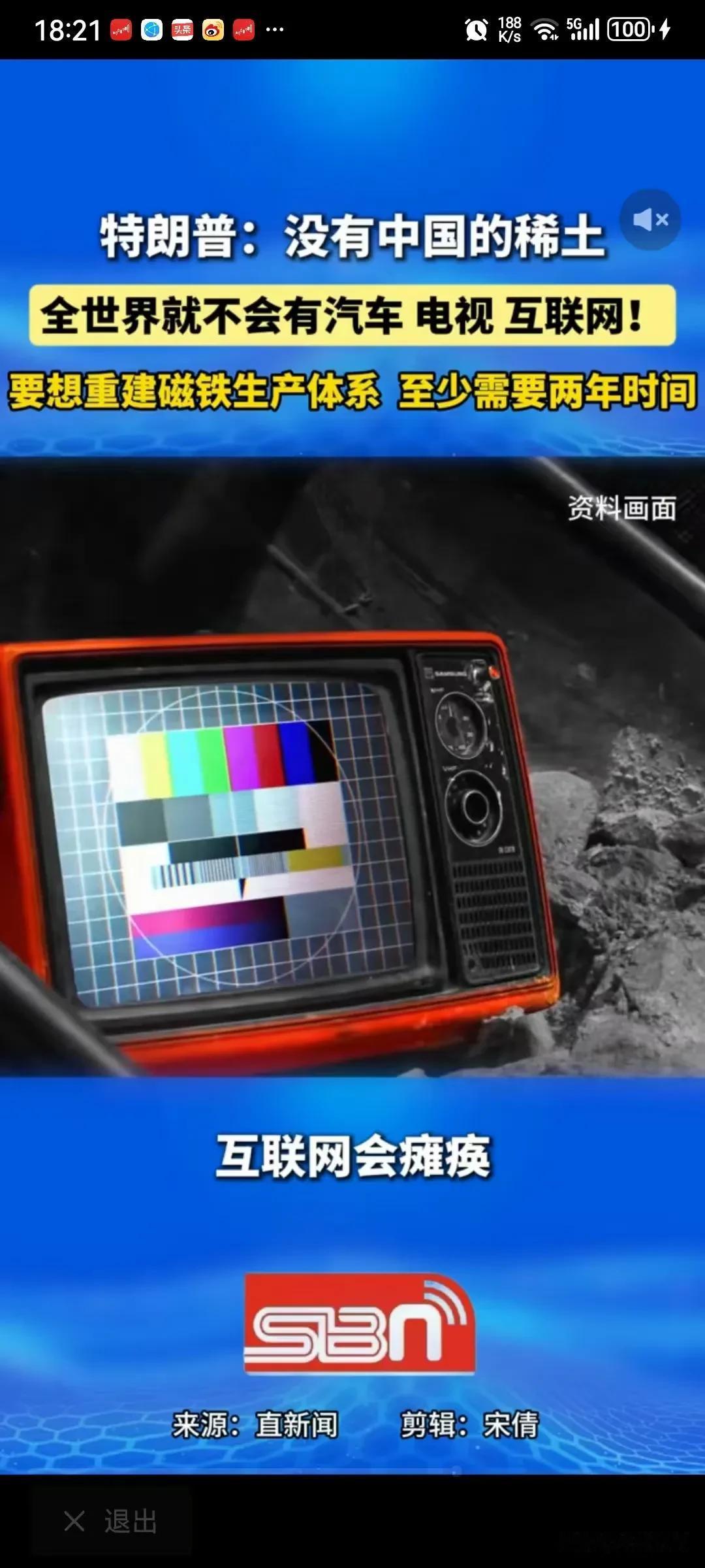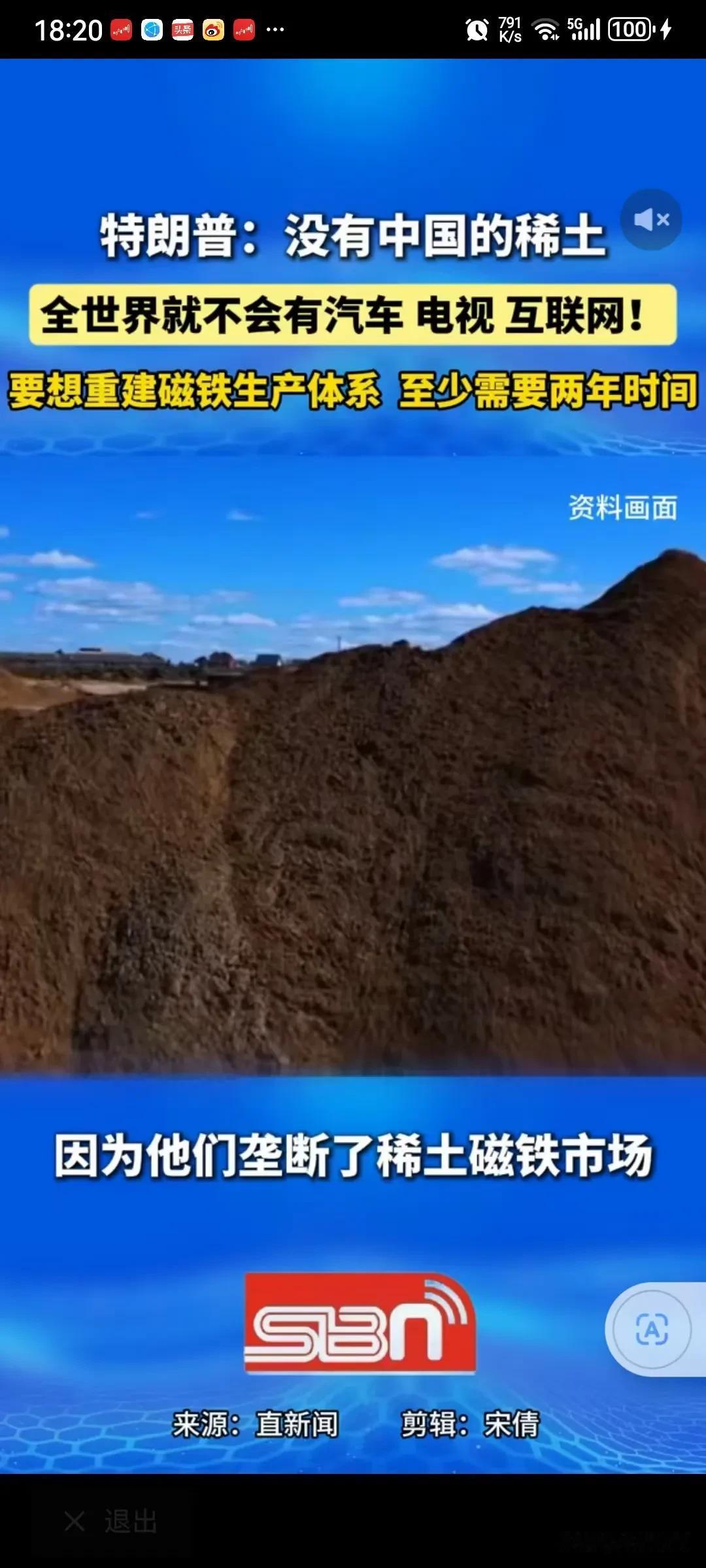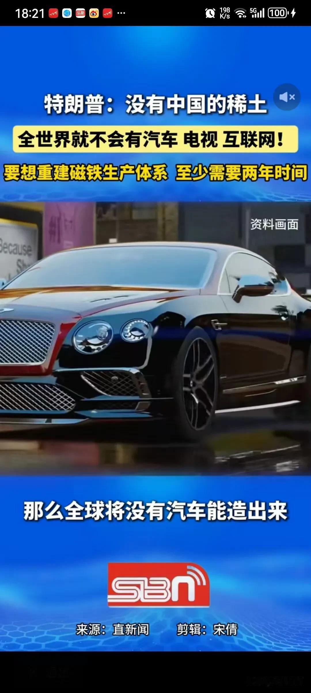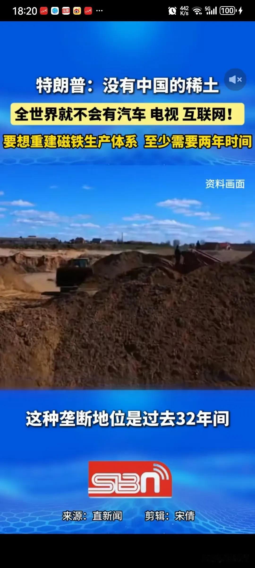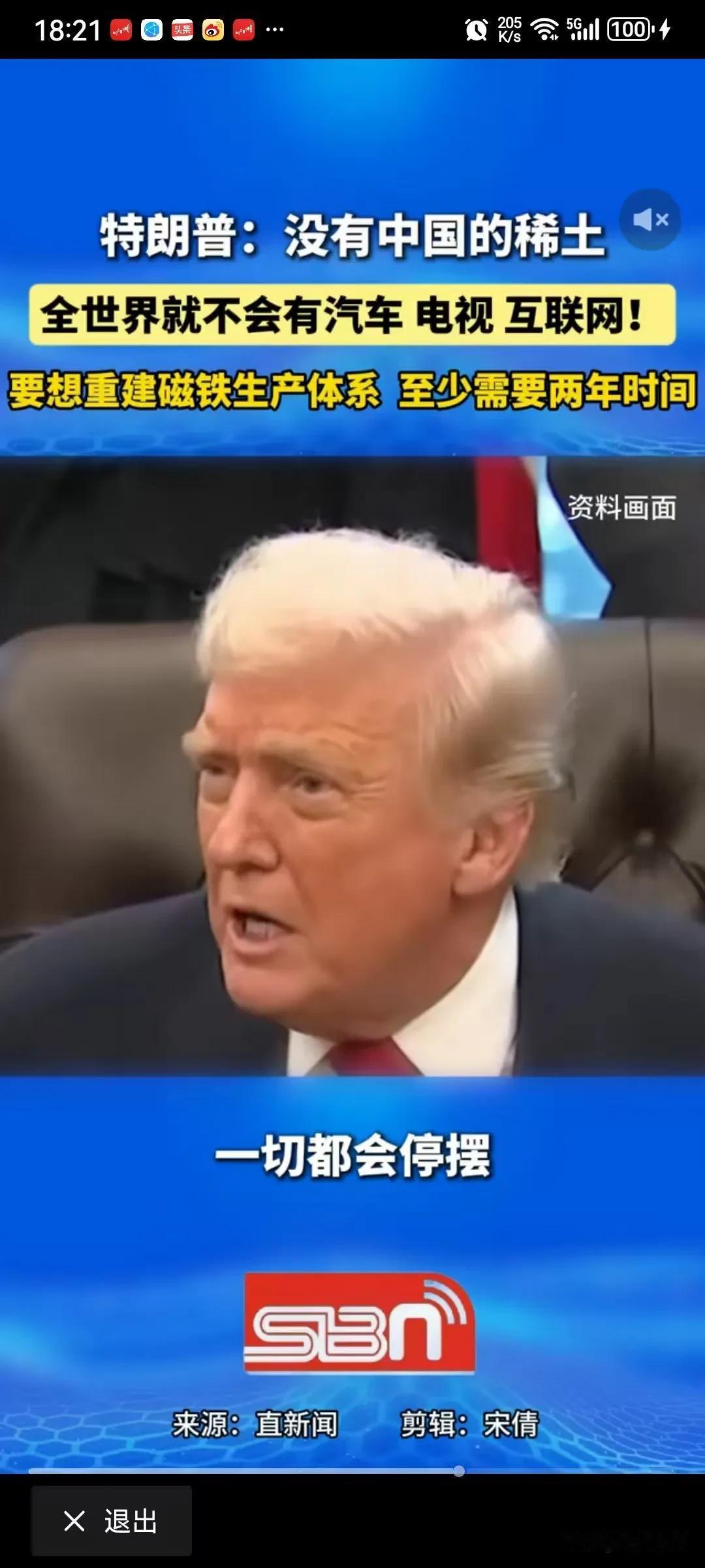 川普称没有中国的稀土,这个世界的一切会停摆,整个西方都造不了车,互联网也会瘫痪,川普称中国在稀土的地位太强了,是过去32年累计出来的结果,所以中国的稀土左右着整个西方的高端制造,现在别无选择,只能和中国买稀土才不会破产倒闭,但是川普也强调稀土技术并不是什么高精尖的技术,只是美国重建稀土产业链需要两年而已,所以川普让西方不要害怕,等美国两年!其实两年很快的,看到时候川普被怎么打脸了!
