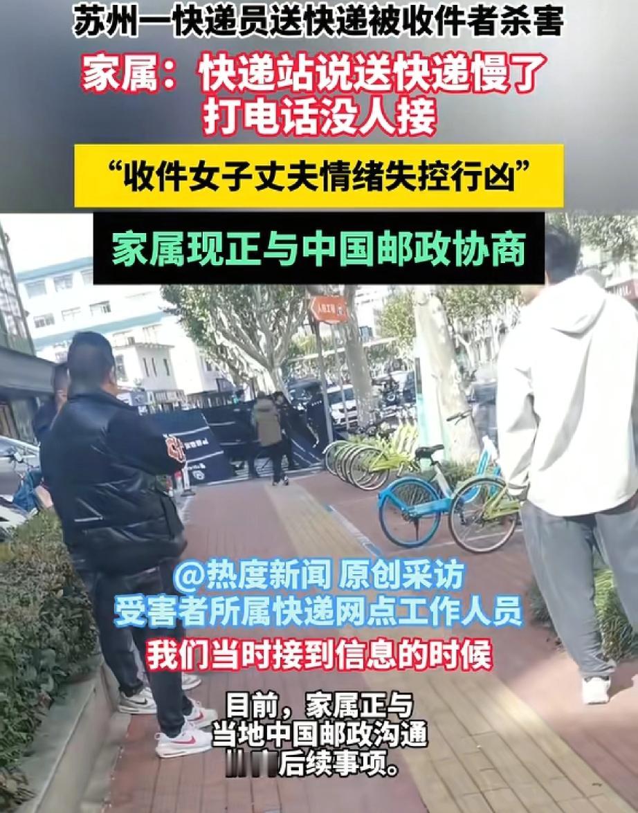 江苏一快递小哥送错了快递,女子当场情绪崩溃,两人发生激烈争吵,女子丈夫也受到了刺激,突然拿刀捅死快递小哥。真是无妄之灾! 事发当天,小赵像往常一样穿梭在大街小巷派送包裹,没想到系统定位出了故障,导致本应该配送给吴女士的包裹,被送到几百米外的投放点。 小赵发现问题之后,第一时间联系吴女士,想要表达自己的歉意和说明具体的情况。经过多次拨打电话,最后吴女士总算接了。 但是电话那头情绪非常地激动,吴女士急忙忙地从家里赶到现场,一到了现场,吴女士就与小赵发生了激烈的争吵。 此时,吴女士的丈夫或许是受到了刺激,心中的怒火直冲脑门,突然间他掏出一把刀,直接捅向了小赵。 小赵当场失血倒地,最后目击者报了警和打了120,但是很可惜,因为失血过多,小赵不治身亡。 回顾整件事,起初是系统定位出现故障,导致小赵送错了快递,如此看来,这甚至都不算是小赵的工作失误。 而且小赵在发现问题后,第一时间就是联系吴女士表达歉意,态度诚恳,也尽到了他的责任和义务。 本来这只是一件很小的事情,但小赵倒了血霉,碰到的吴女士是一个情绪容易激动的人,她把这件小事无限的放大,得理不饶人。 其次,如果吴女士的丈夫是一个情绪稳定的人,那么这一起悲剧也不会发生。但老天爷就爱开这种玩笑,偏偏吴女士的丈夫更加偏激。而且他明明有那么多途径可以解决掉这件事情,但他选择了持刀伤人,可见意图有多么明显。 更令人毛骨悚然的是,小赵倒地后,还是目击者报的警,打的120。这也侧面说明了这夫妻俩既冷漠又无情,丝毫不觉得自己做的有什么问题,像这样的人必须得到法律的严惩! 关注@柴一言堂 ,看尽世间事 【来源:热度新闻】