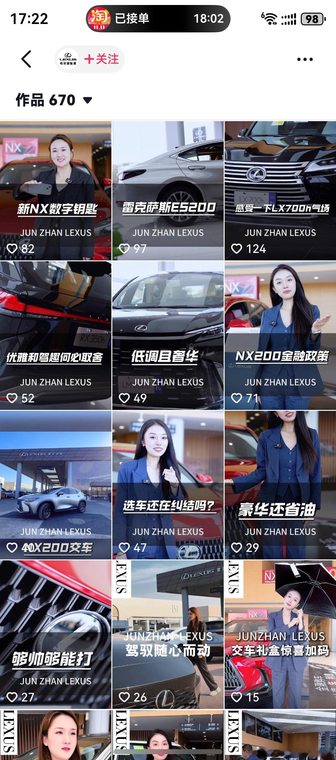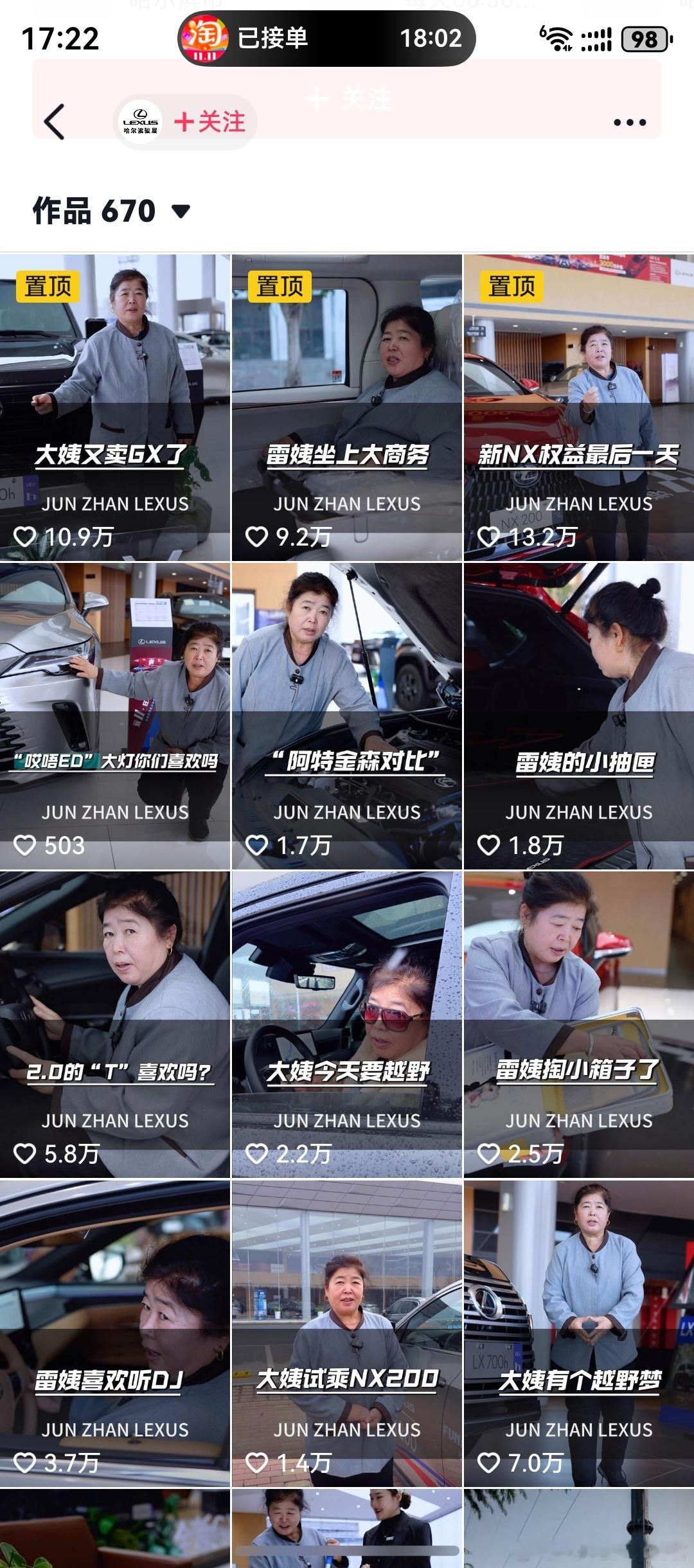 雷克萨斯4S店的保洁阿姨说车一夜爆红,10万点赞的视频,店长给包了200红包翻了下这家店之前的视频流量,不知道店里原来的主播现在还好吗