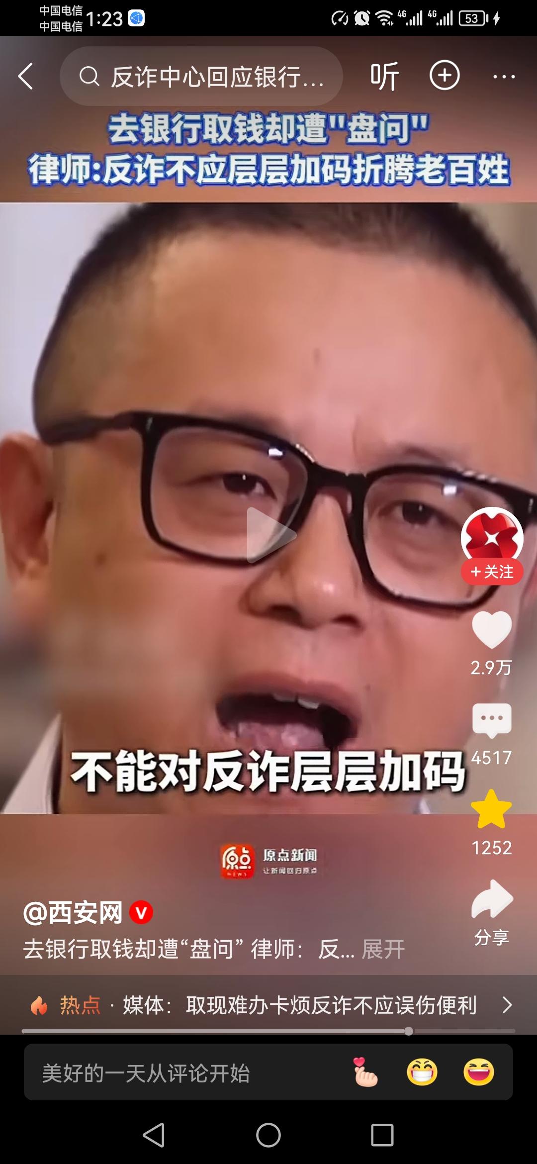 为什么大家对于这次律师取款被银行各种盘问,钱从哪里来,用来干什么,还要离谱到报警让警察来处理的事情,如此的关注。其实说起来也非常的简单,无非就是以下几个原因罢了! 一,大家把钱存在银行里,本来就应该是存取自由的,为了大家好,防止被诈骗,出发点是好的,但有点矫枉过正,管的太多了,就像律师说的,银行不是公安机关,储户的钱取出来用来买什么,干什么,根据就不应该多问多管。 二是,这次碰到了一个较真的律师,同时也是一个普通人,以前也有不少的情况,大家没有办法只能配合,但这次律师在已经最大限度地配合的情况下,还是被银行柜台各种盘问,但律师毕竟是律师,最熟悉的就是各种法律法规,合不合理自然也就非常的清楚。 三是,像律师这样的情况真的是太普遍了,银行一句防诈骗,老百姓想把辛苦存起来的钱,拿一点出来用,还要被这种折腾,真的是不应该啊,毕竟老百姓取款都是“小钱”,真正要防的是那些“大钱”啊!取钱被查问 律师取钱