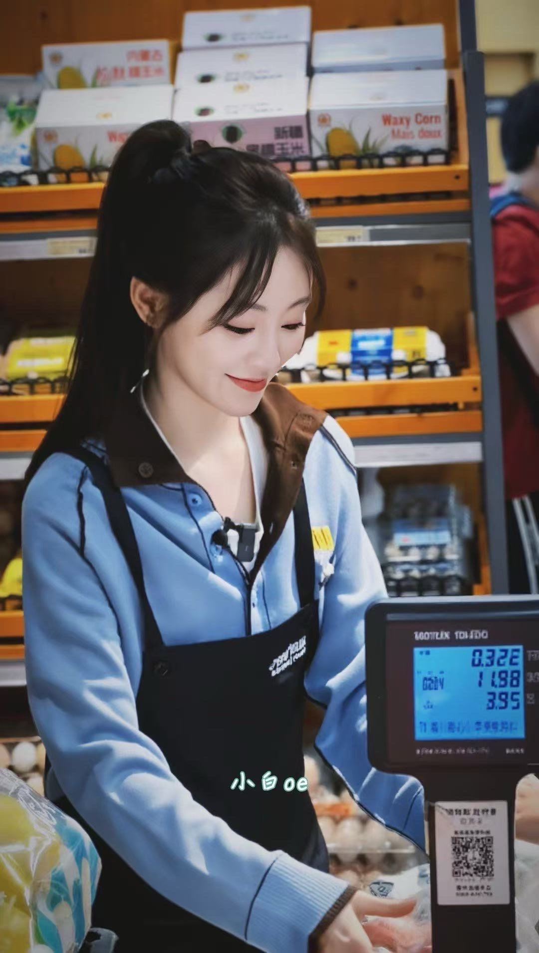 祝绪丹超市打工实录好萌!帮挑苹果数着数着就忘,称重递物超周到,被小朋友举手表拍摄影+要合影,荐果实诚不套路,接地气超可爱~