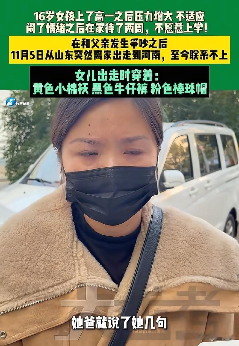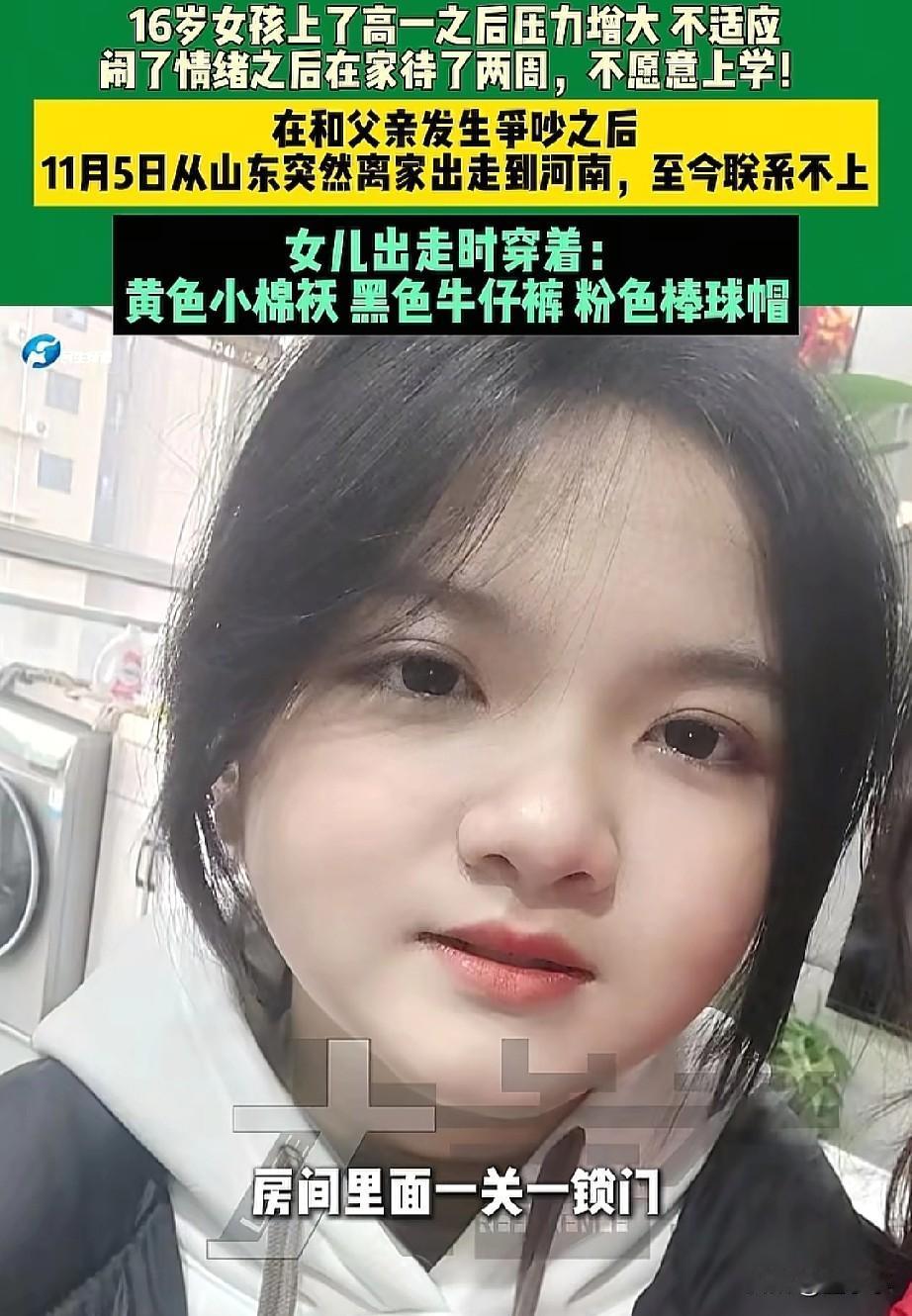 11日5号,一个16岁女孩从山东老家离家出走到河南失联,至今都联系不上,家属急的崩溃了。 我第一次做妈妈,你也是第一次做孩子,我哪里做的不好,你可以说,妈妈改,现在最起码让妈妈知道你是安全的,这是一位女子想要通过媒体来告知女儿。 原来,女孩刚上了高一,因为课程跟不上,压力又大,有点不适应,就闹情绪在家里不去上学,每天待在屋里玩手机,谁都不允许进。 孩子的爸爸看不下去了,就说了她两句,父女两个人就争吵了起来,完事后女孩就从老家直接坐车到了河南,根据位置显示,孩子就在郑州丰庆路附近,始终没有找到。 妈妈很不理解,她自己一个人为什么会跑到这里来,妈妈担心孩子的安全,不断的苦苦寻找,也想通过媒体来传达,妈妈是爱你的。 哎!现在的孩子真的不能给她压力,能读就读,不能也要尊重她绝不能打骂。 有些孩子心里接受能力很脆弱会想不开,16岁也正是叛逆期阶段,更应该要好好的哄。