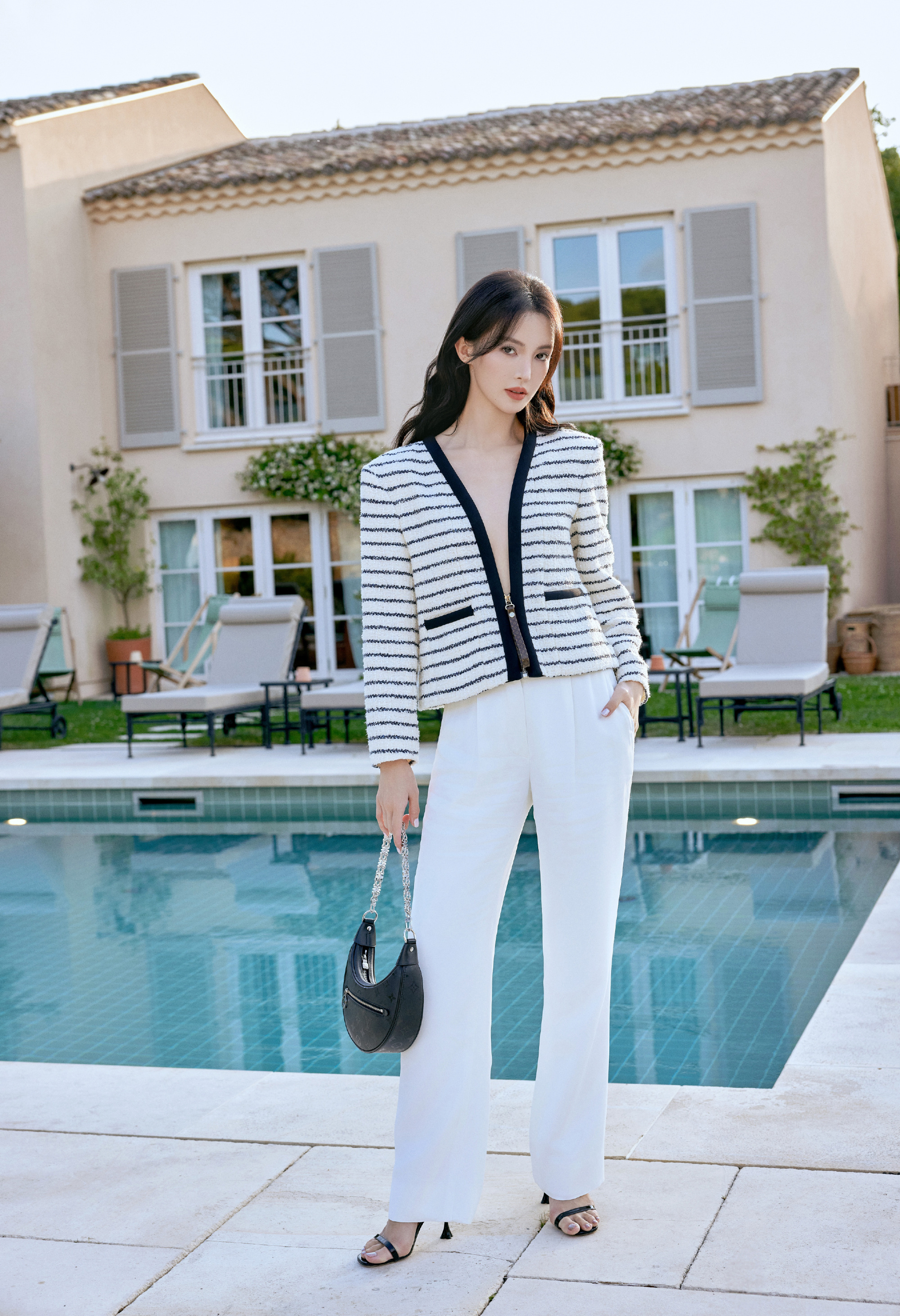 这身亮黄色套装太吸睛!露腰设计+麻花装饰细节满满,搭配简约白包,明艳又有质感,走