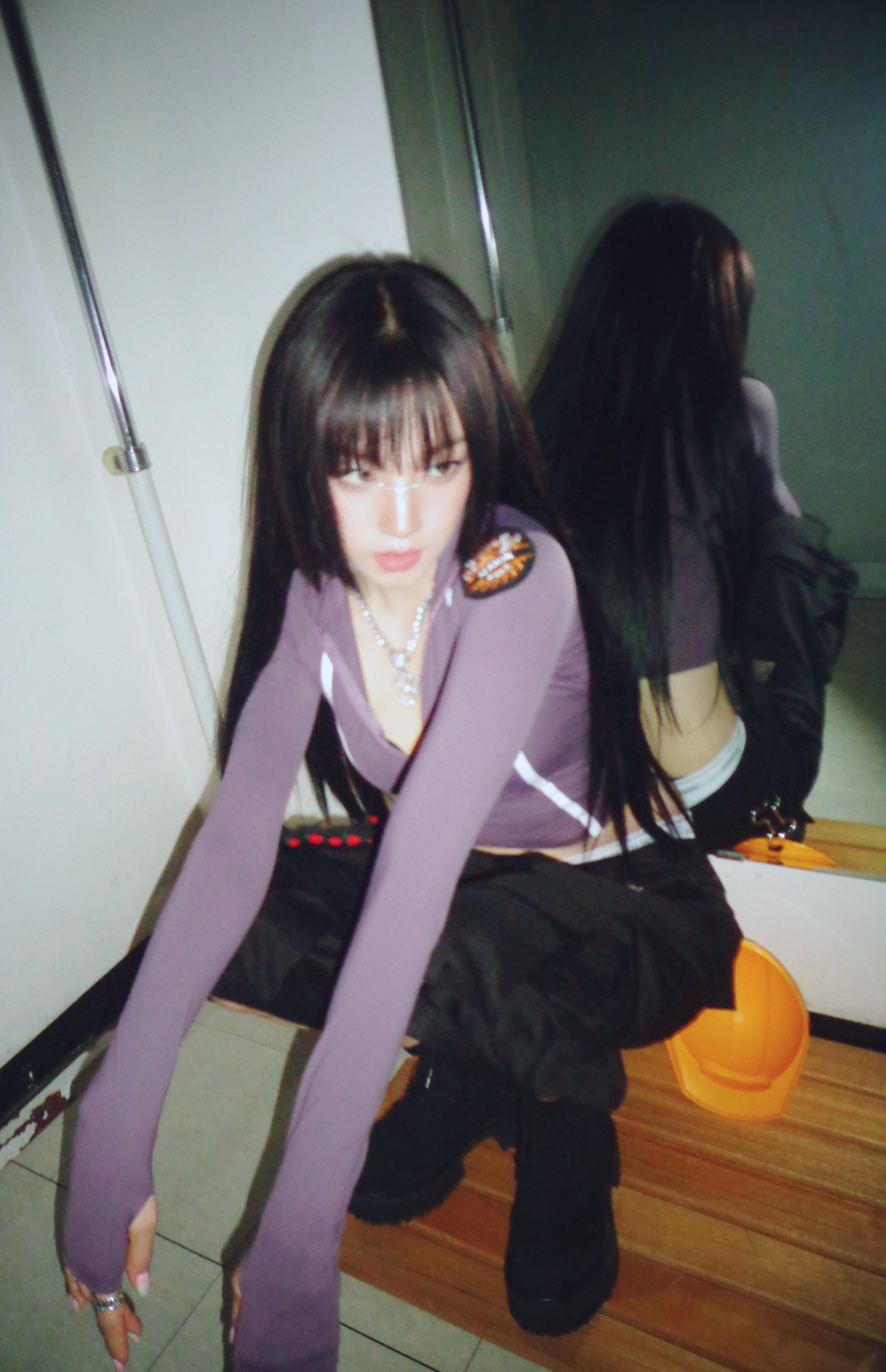 宋雨琦楼梯大片:一身紫色热裤,又酷又美